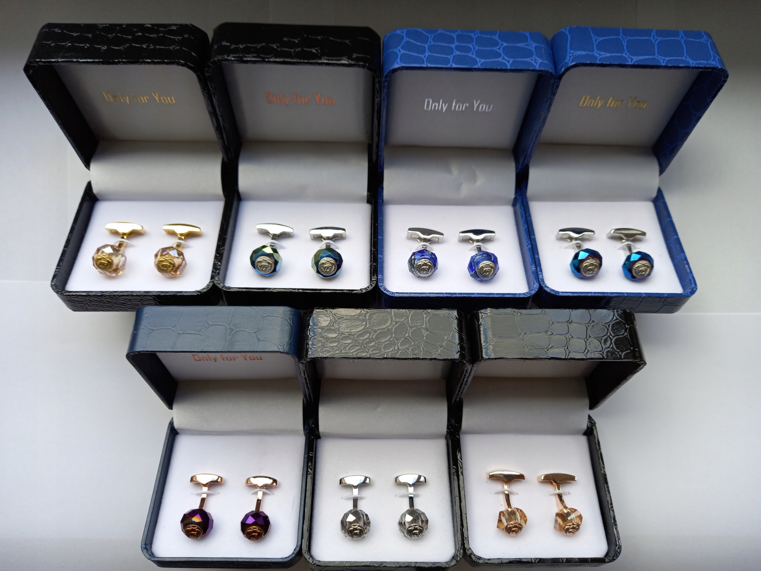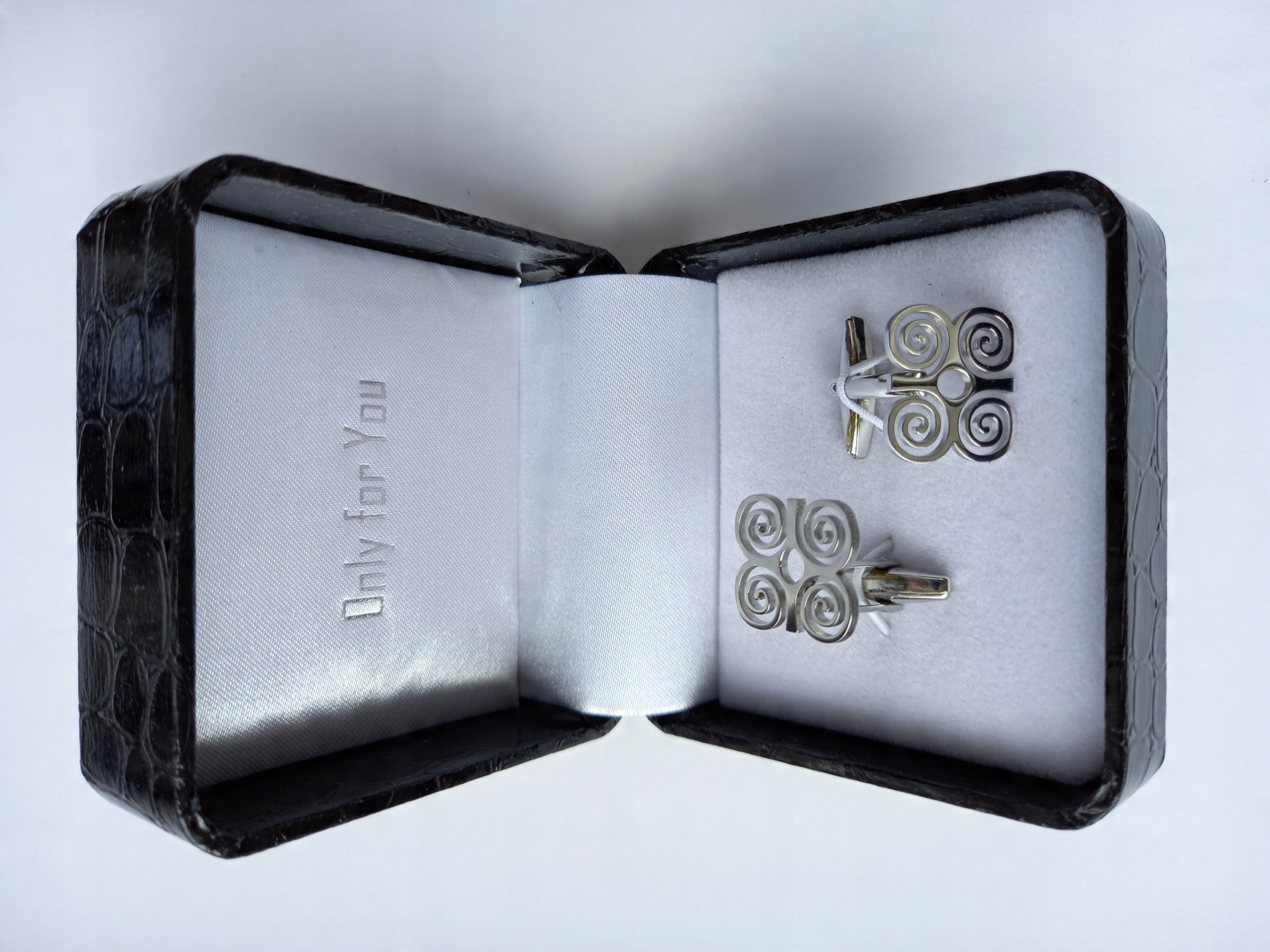 - Запонки набір запонок упакований в ексклюзивний атласний футляр розміром приблизно ,5 х 7,5 х 4 см зі знімною вставкою для запонок.
