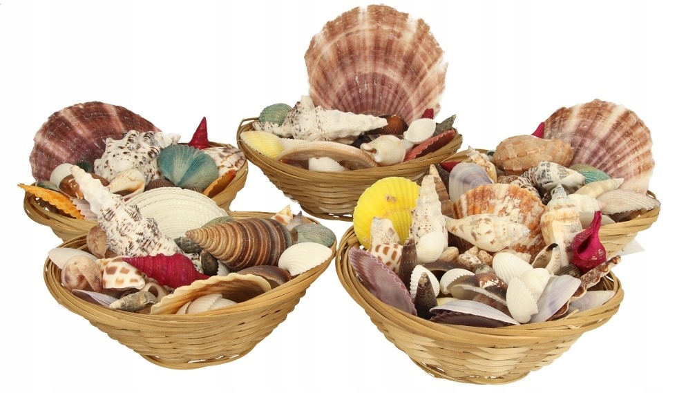 Натуральні морські мушлі різних розмірів і кольорів упаковані в бамбуковий кошик. Вони ідеально підходять як елемент декору, як доповнення до свічкових композицій, центральних елементів або як подарунок. Підходять до будь-яких композицій на морську тематику.