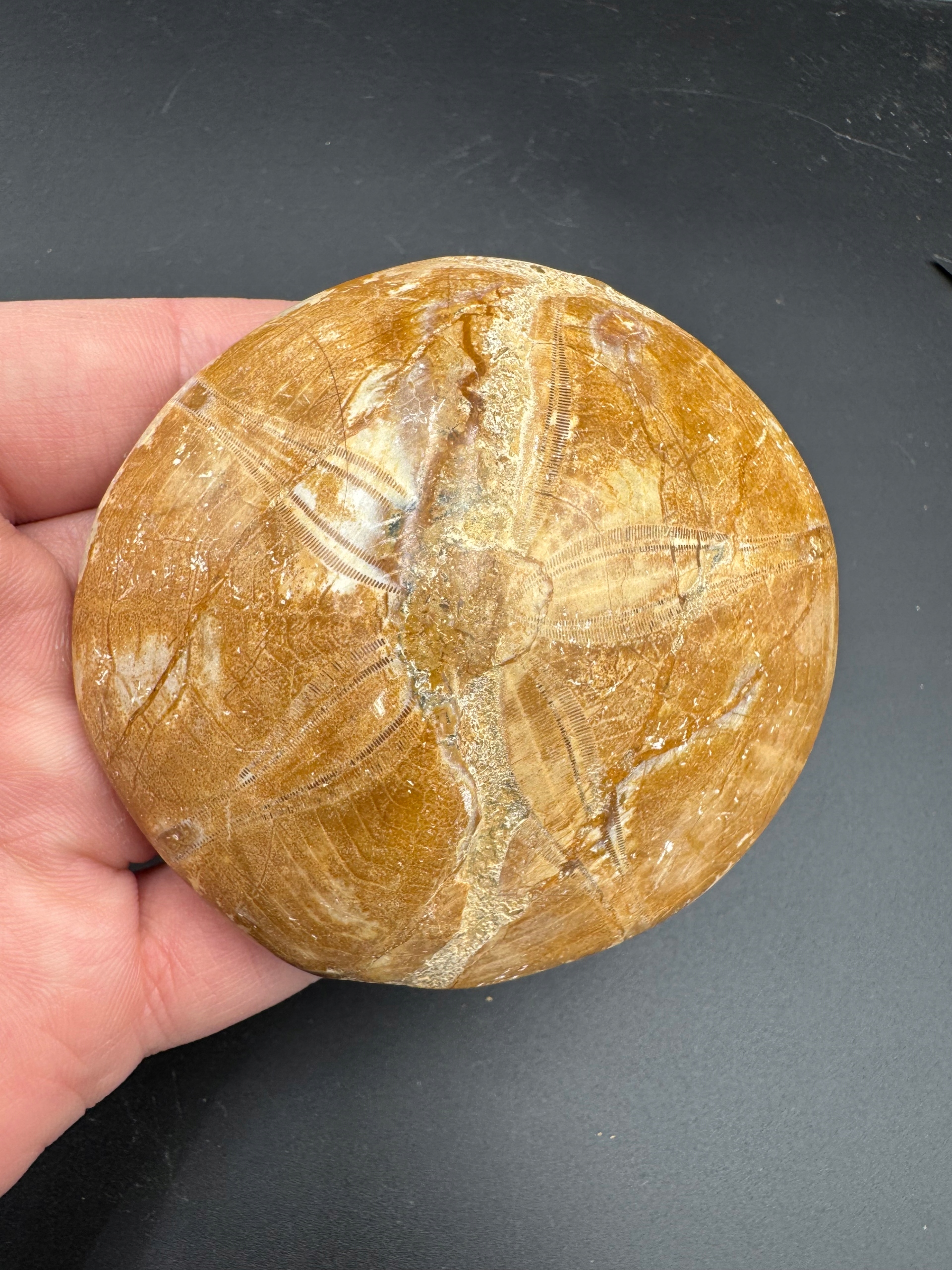 НАТУРАЛЬНИЙ SEURURCHIN PYGURUS MARMONTI. ПОЛІРОВАНИЙ ОДНОБІЧНИЙ ЗРАЗОК. ДУЖЕ ДОБРЕ ЗБЕРЕЖЕНІ СКАМЕНЛІСТЬ.