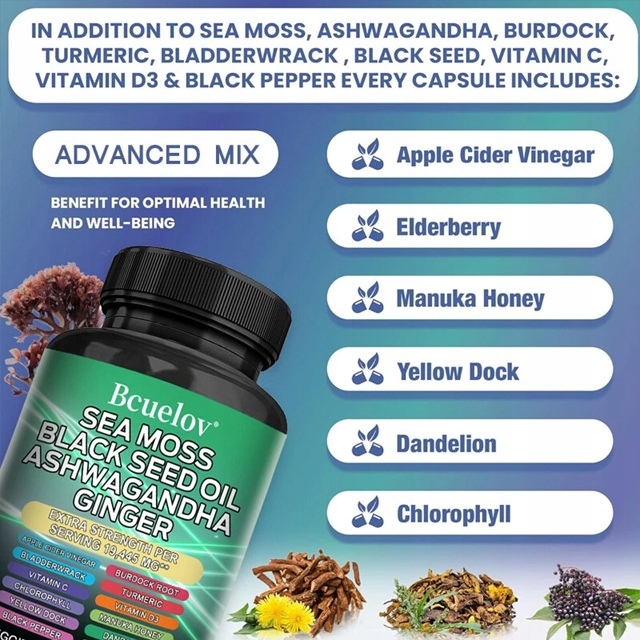 Морський мох, олія чорного кмину, ашваганда, додатковий імбир, підтримує вогонь...