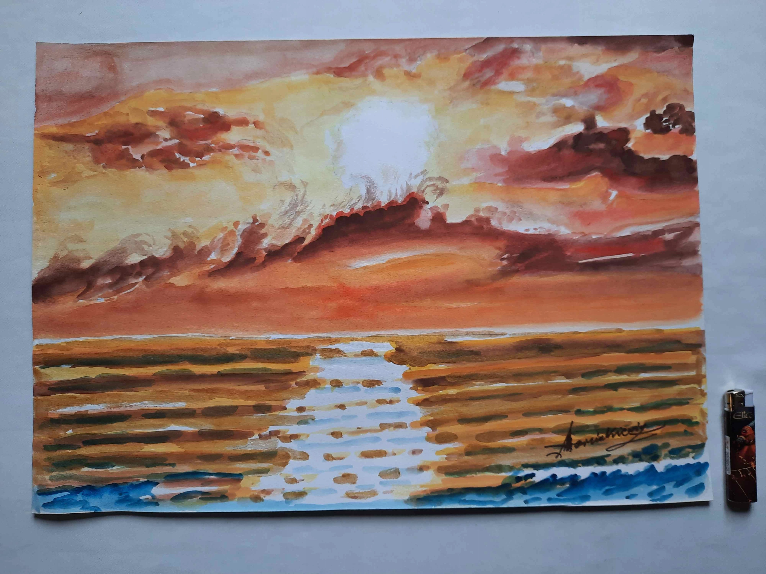 Через велику кількість акварелей, запальничка використовується для ілюстрації розмірів картини і не є предметом покупки.