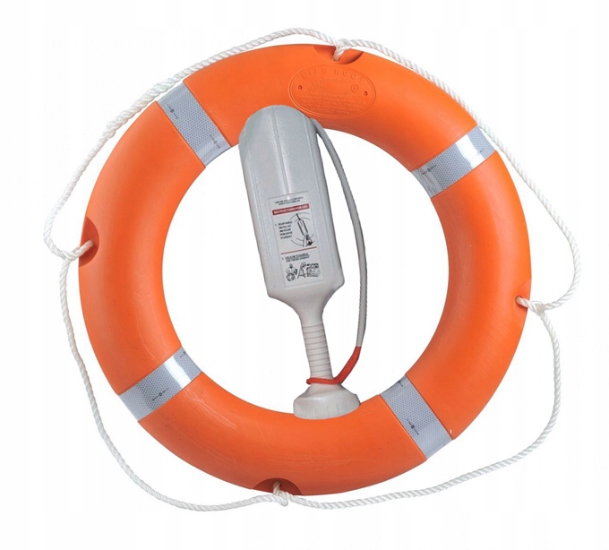 Легкий морський рятувальний круг EC-MED діаметром 72,0 см, зі світловідбиваючою стрічкою та контейнером для мотузки (зазвичай називається "дротик 30x8")