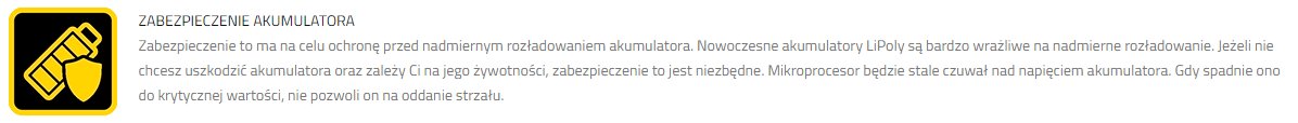 - Захист від зниження напруги для Li-Poly/Li-Ion/LiFePO4/NiCd акумуляторів