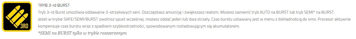 Багатофункціональний програмований MOSFET третього покоління. Система має аж 10 функцій. Новою функцією є режим 3-rd Burst, який дозволяє обмежити довжину серії. Система дозволяє регулювати темп стрільби без втрат, захищає сучасні літій-іонні акумулятори: LiPoly і LiFePO4, має вбудоване активне гальмо і захищає контакти від пошкоджень. Функція Smart Trigger забезпечує швидшу реакцію тригера. Завдяки 2 режимам роботи система працює як з оригінальною, так і з модифікованою установкою AEG. Система призначена для всіх реплік, особливо тюнінгованих. Він був адаптований для роботи з найсильнішими пружинами, включаючи M170.