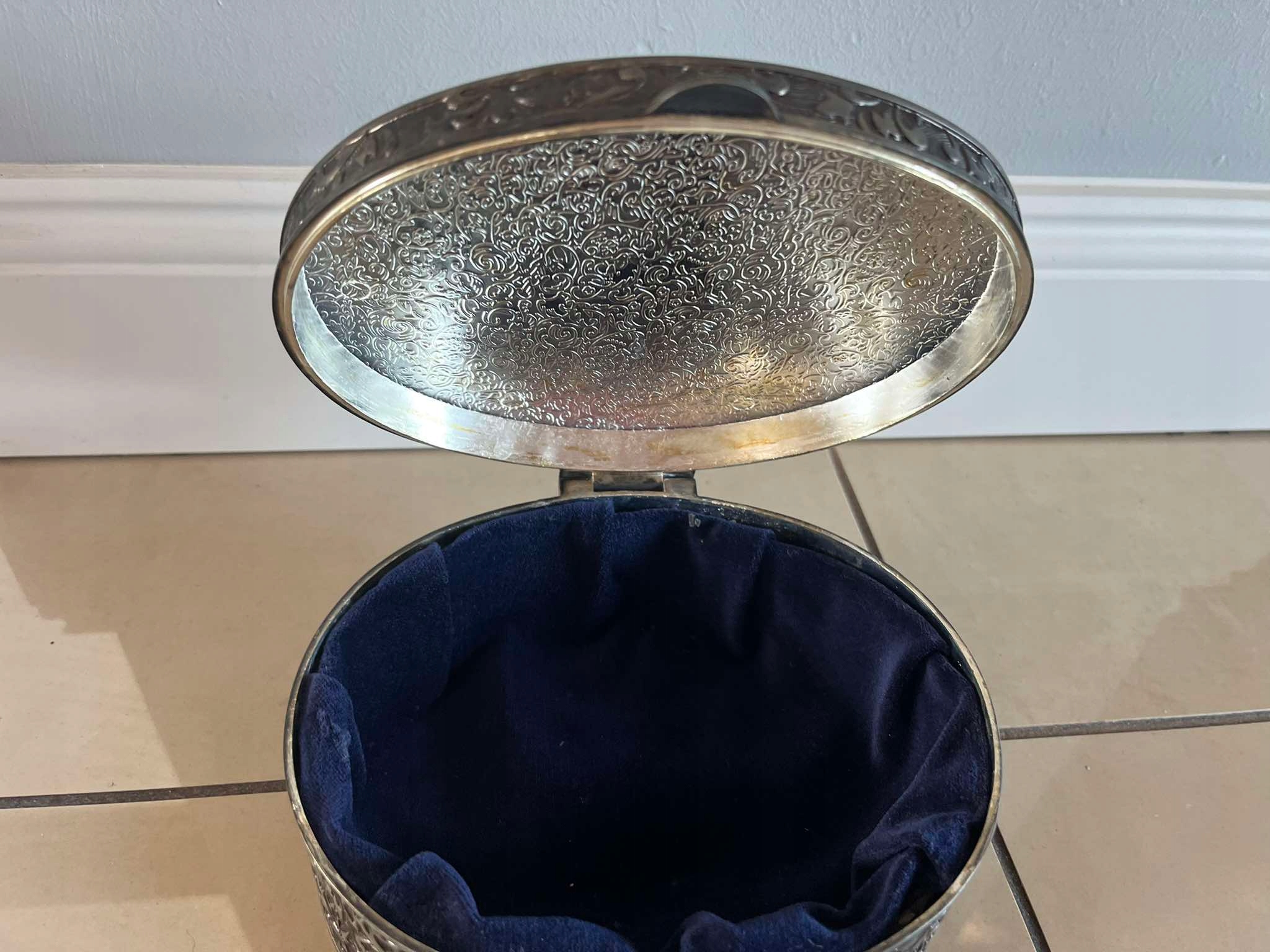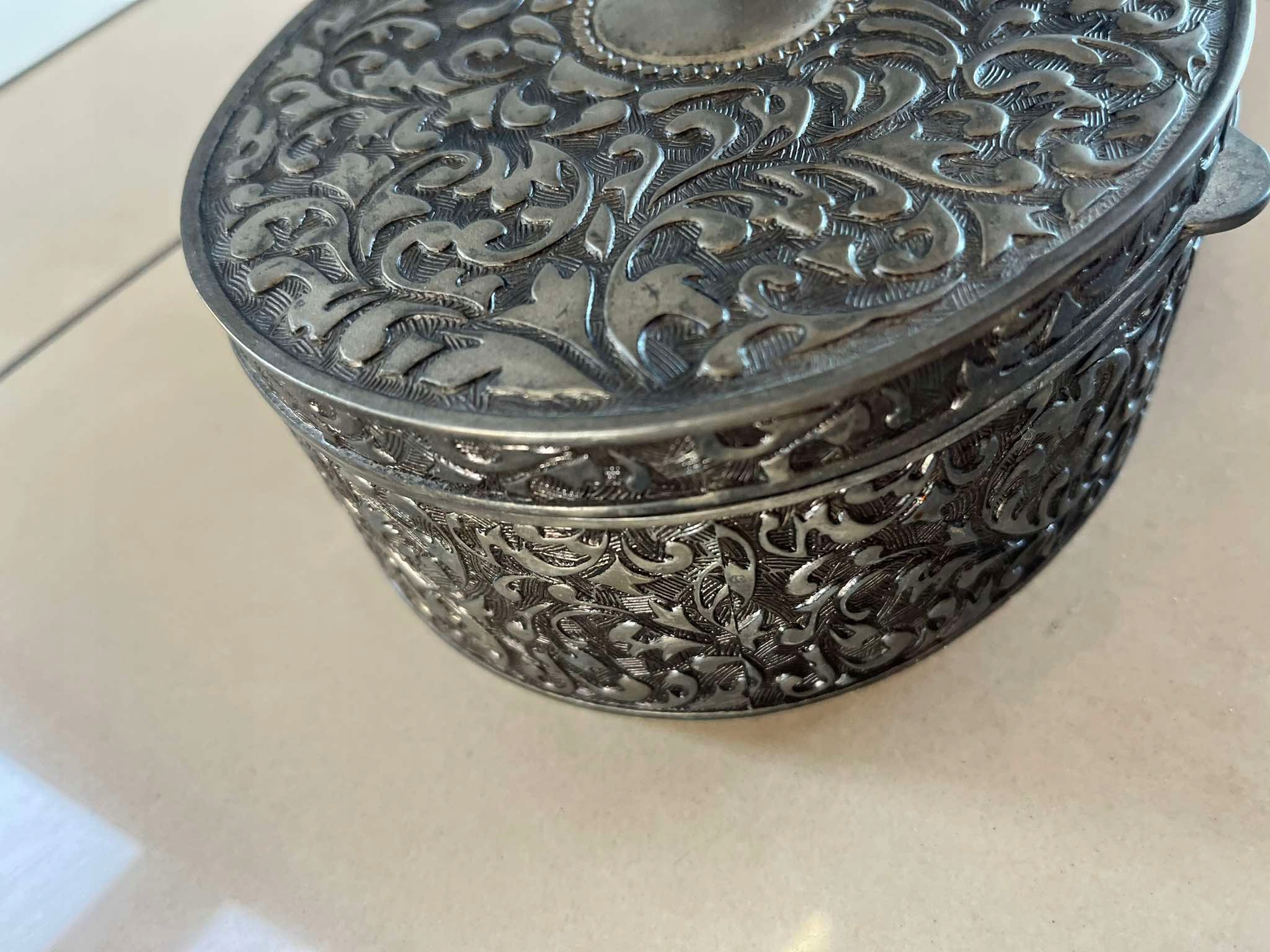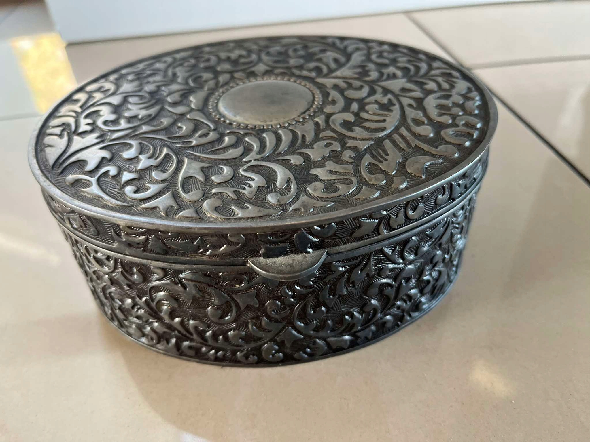 Mosiężna owalna szkatułka platerowana
