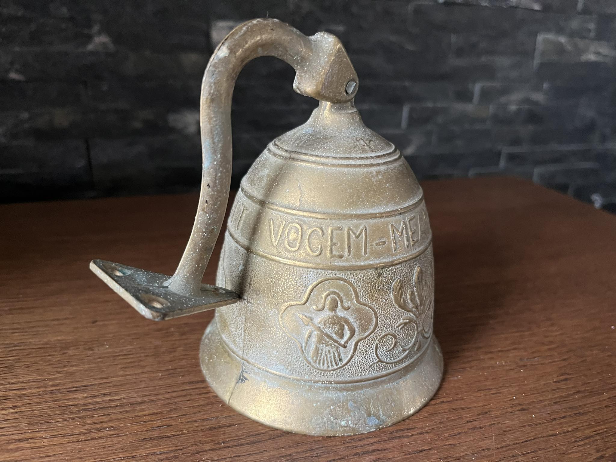 Mosiężny duży dzwon okrętowy przy drzwiach kołatka