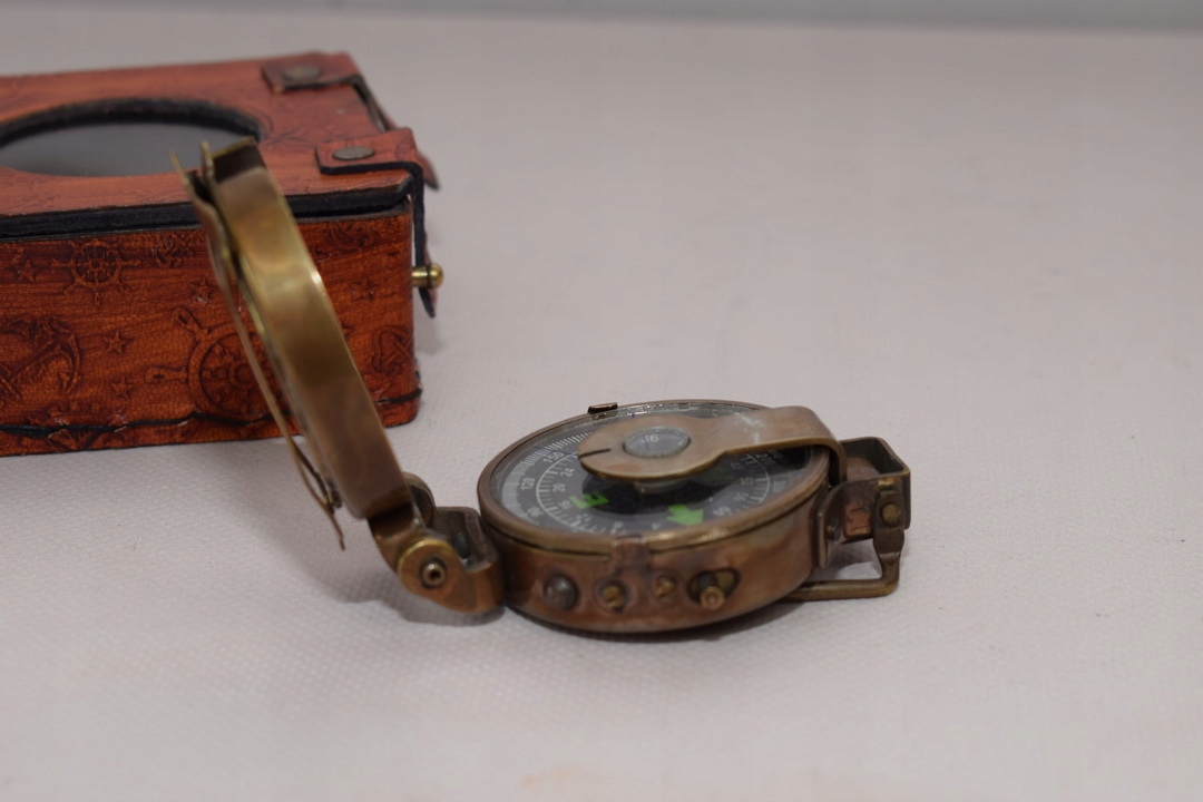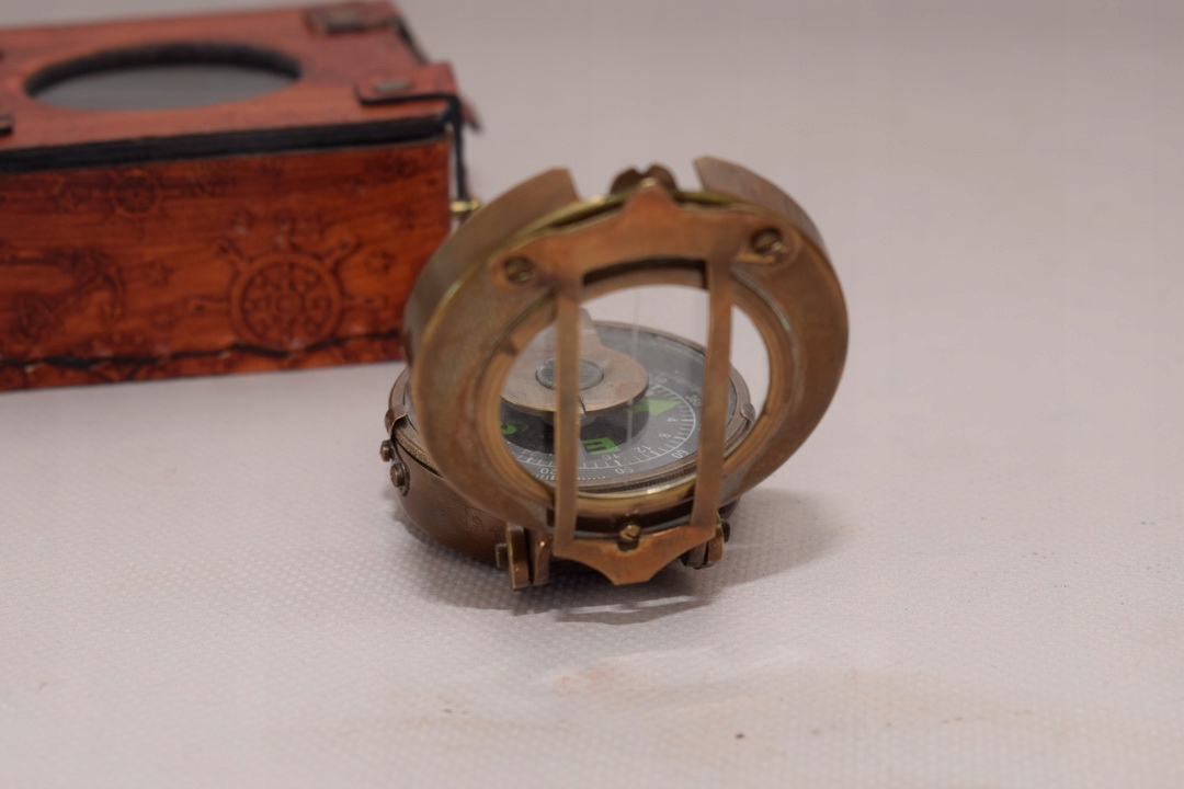Mosiężny Kompas w Skórzanym Etui - Prezent dla Marynarza