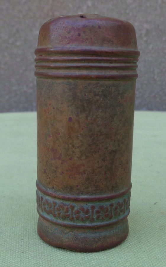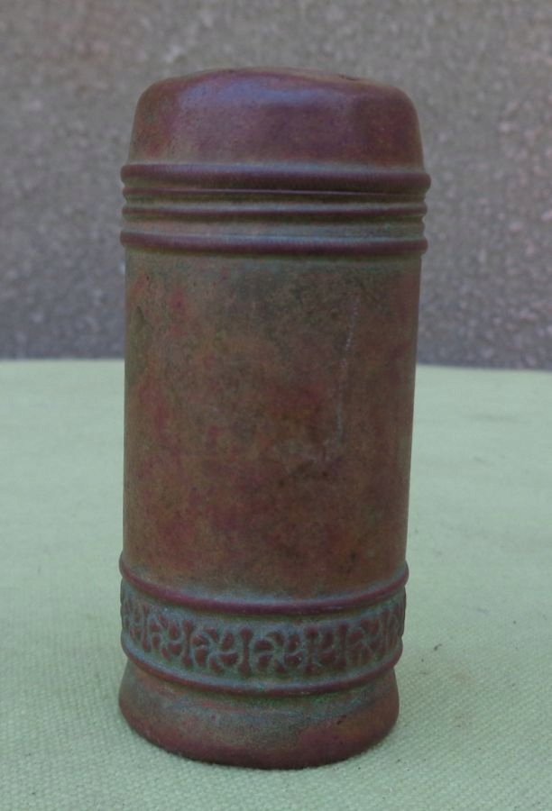 Цікавий, цікавий, підписаний латунний контейнер для спецій 1860-1880 років. Нижня частина експонату прикрашена цікавим, декоративним орнаментом. Ємність має цікаво зроблені опуклості. Експонат підписаний, підпис видно на фото. Експонат вкритий віковою патиною. Рекомендую всім.