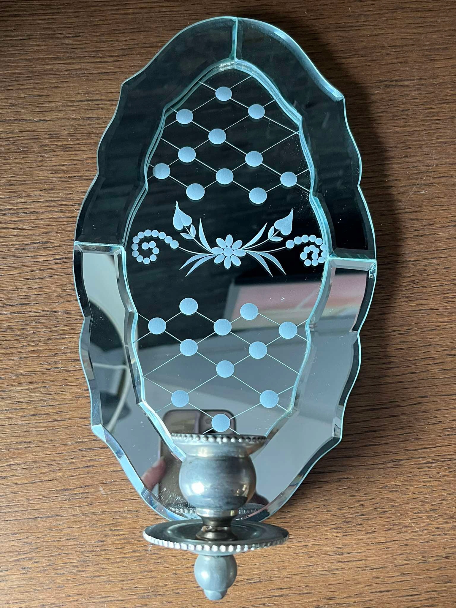 Mosiężny świecznik lustro na ścianę
