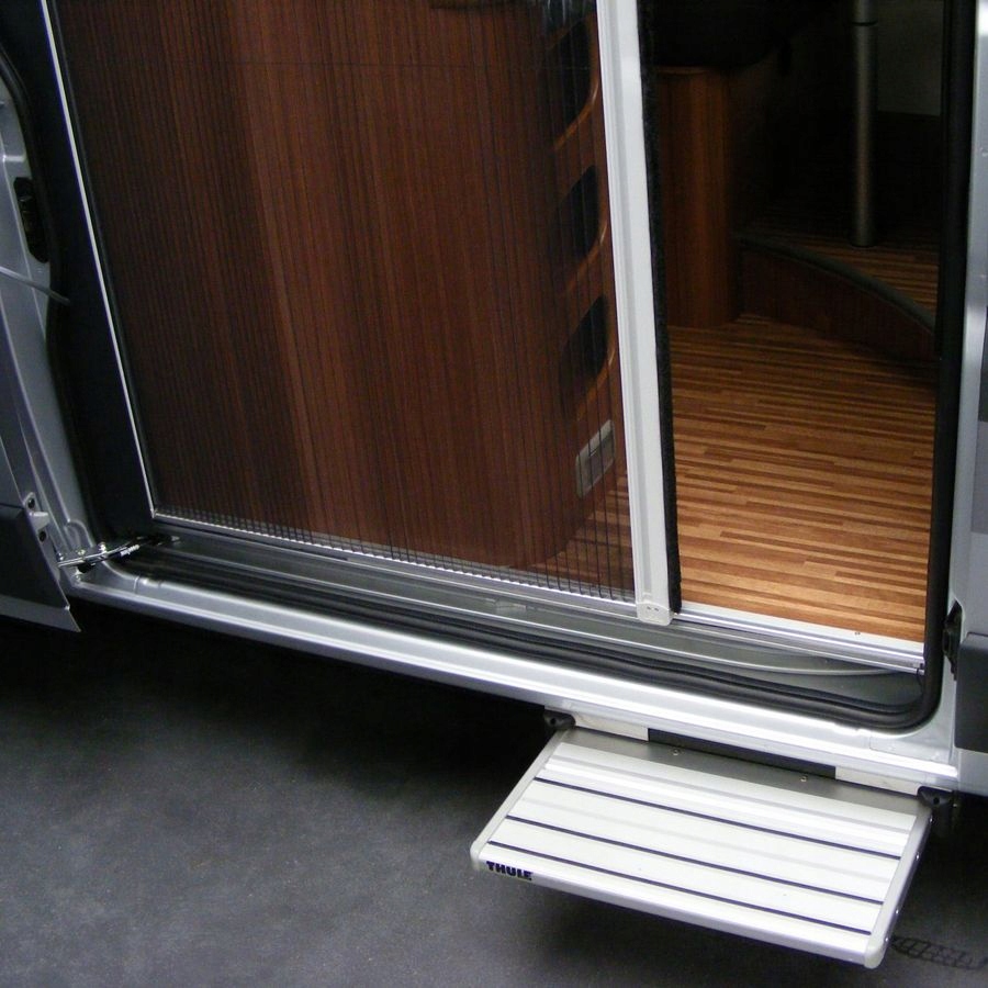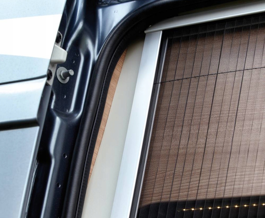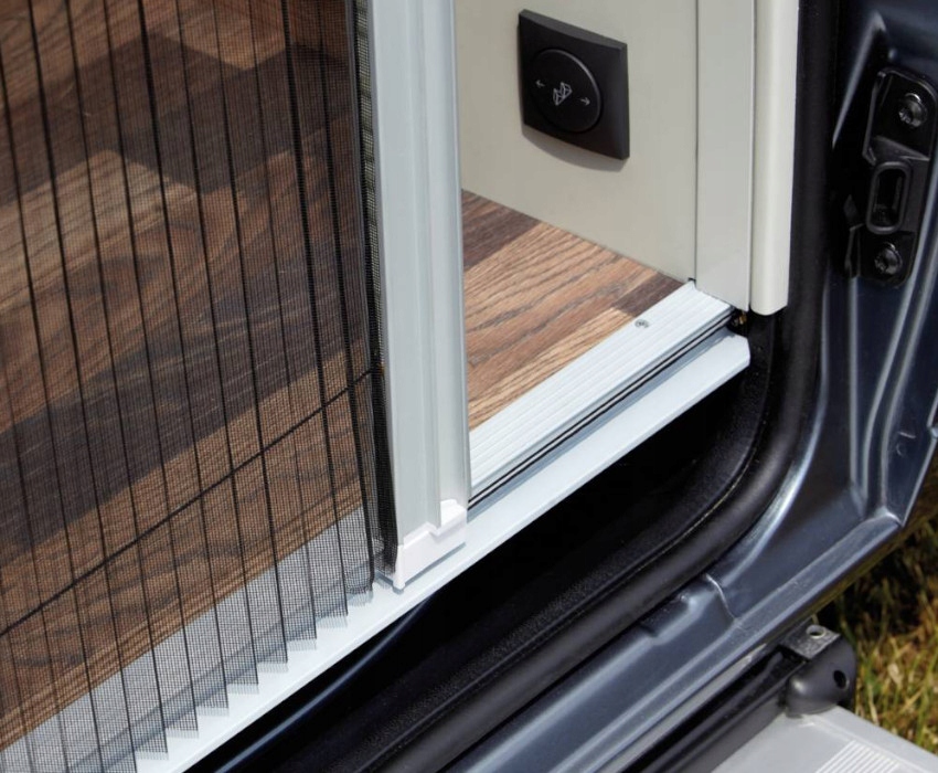 Також перебувати на лоні природи має свої неприємні сторони: жителям трейлерів і кемперів швидко докучають різні види комах. Щоб цього не сталося, найкраще відразу оснастити вхідні двері москітною сіткою індивідуального розміру. Москітна сітка адаптована до розсувних дверей автомобілів Fiat Ducato H2 X250 / X290. Захищає від набридливих комах, пропускаючи свіже повітря в автомобіль.