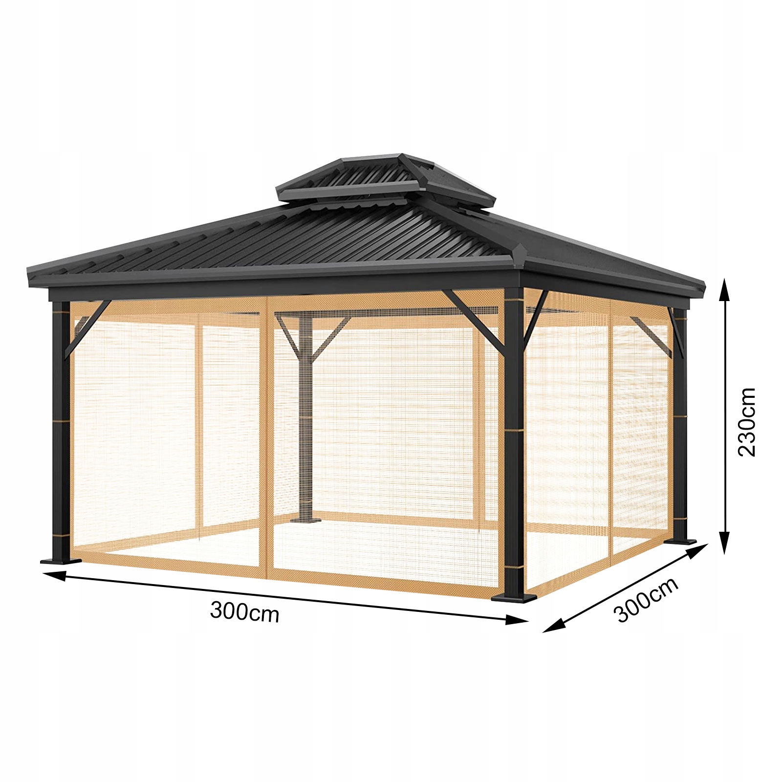 Розміри: 300*300*230 СМ . Перед замовленням виміряйте наявну раму альтанки та переконайтеся, що наш продукт підходить для неї.