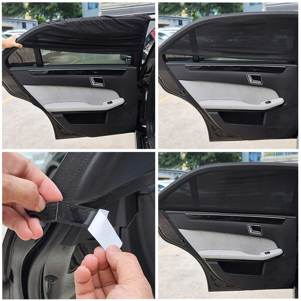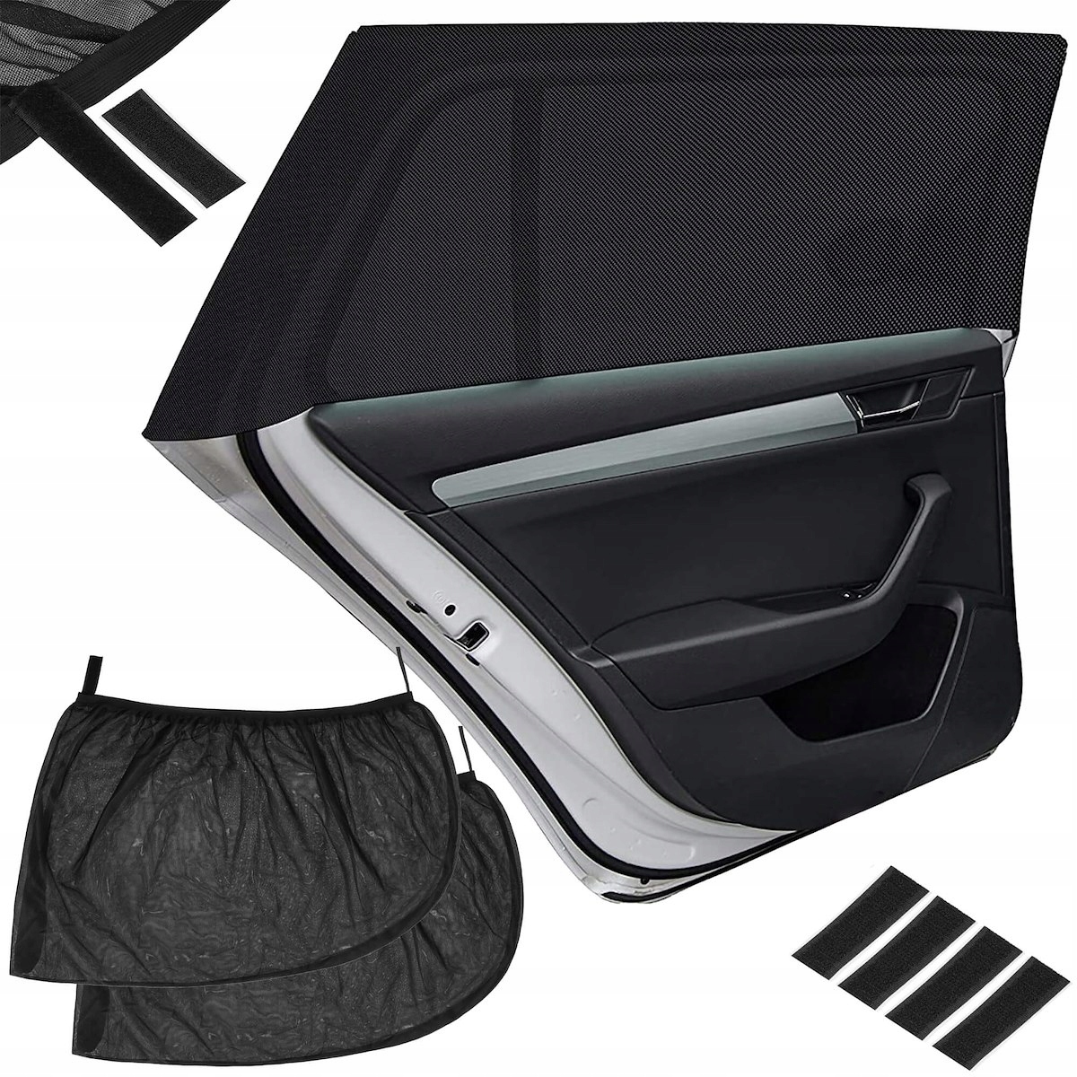 Автомобільні шторки виготовлені з міцноїі міцної нейлонової сітки, яка забезпечує тривалий термін служби виробу. За правильну посадку відповідають липучки з двостороннім скотчем. Завдяки універсальним розмірам штори підходять до більшості автомобільних вікон.