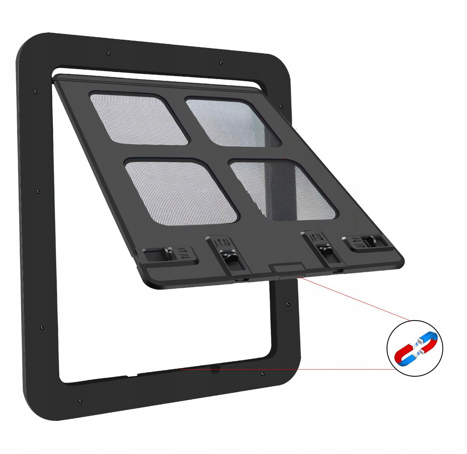 - Вбудований магніт може автоматично закривати двері, коли ваш кіт чи собака вийде.