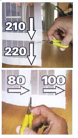1. штора адаптована до рам шириною 80, 90, 100 см і висотою 210 і 220 см. Його слід розрізати по спеціально пристосованих для цього швах