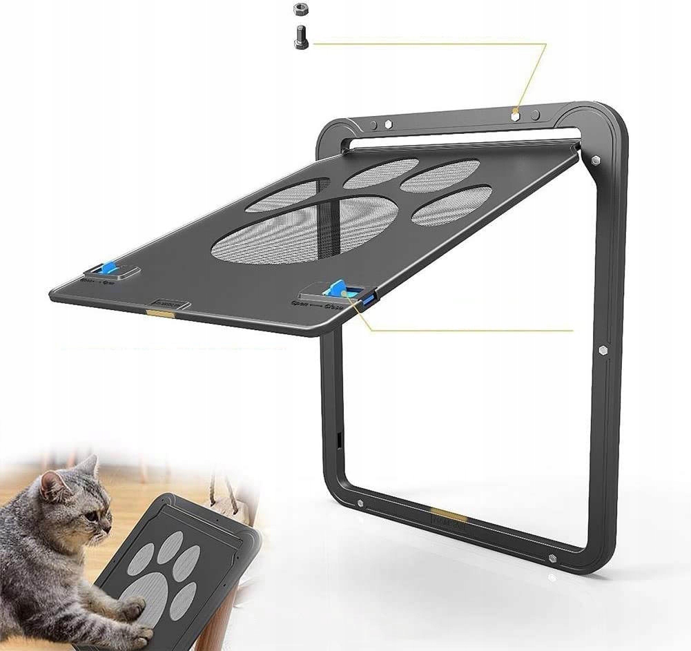 Дверцята для домашніх тварин постачаються з інструкцією зі збирання. Він простий і зручний у використанні, прикручується та може бути ідеально інтегрований у дверну сітку. Рекомендовано, щоб домашні тварини заходили та виходили через ці двері на початку використання.