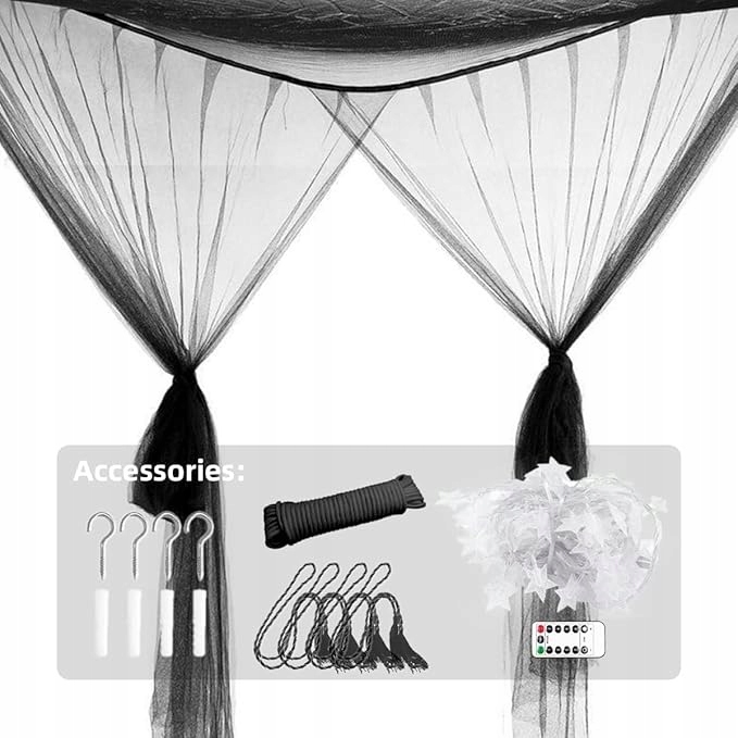 - НАДІЙНИЙ УСІБНИЙ ЗАХИСТ Класичний дизайн із 4 отворами забезпечує 4-вимірний простір комфорту. Допоможе вам комфортно та гармонійно спати у вашій приватній кімнаті. Конструкція з отвором проста у використанні, забезпечує повний захист для вашої родини та допомагає захистити вашу шкіру від мух, укусів та інших комах.