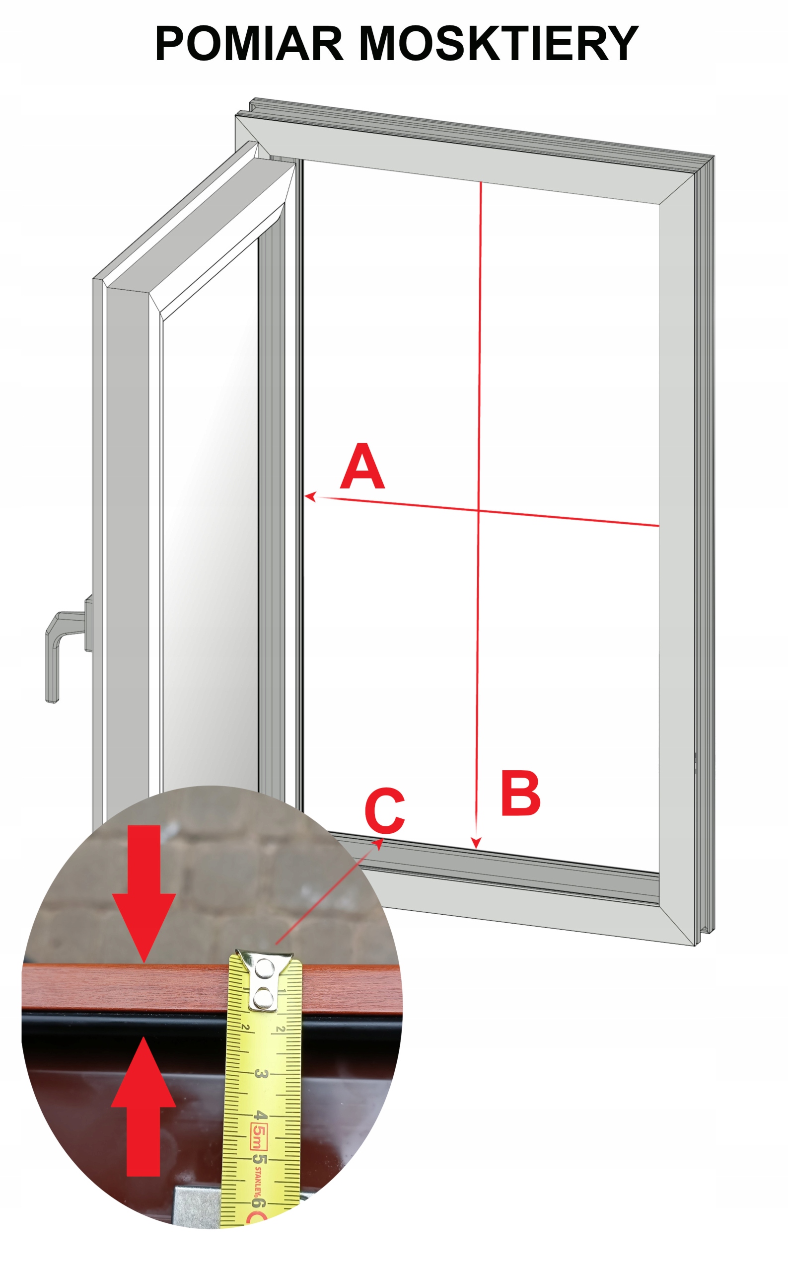 Ми рекомендуємо проводити вимірювання за допомогою вимірювальної та точної. Будь ласка, зробіть дійсно точні вимірювання, , оскільки сітки комарів виробляються з точністю 1 мм. Якщо ви правильно зробите вимірювання, як рекомендували, впорядкована сітка комарів буде відповідати виміряному вікні.