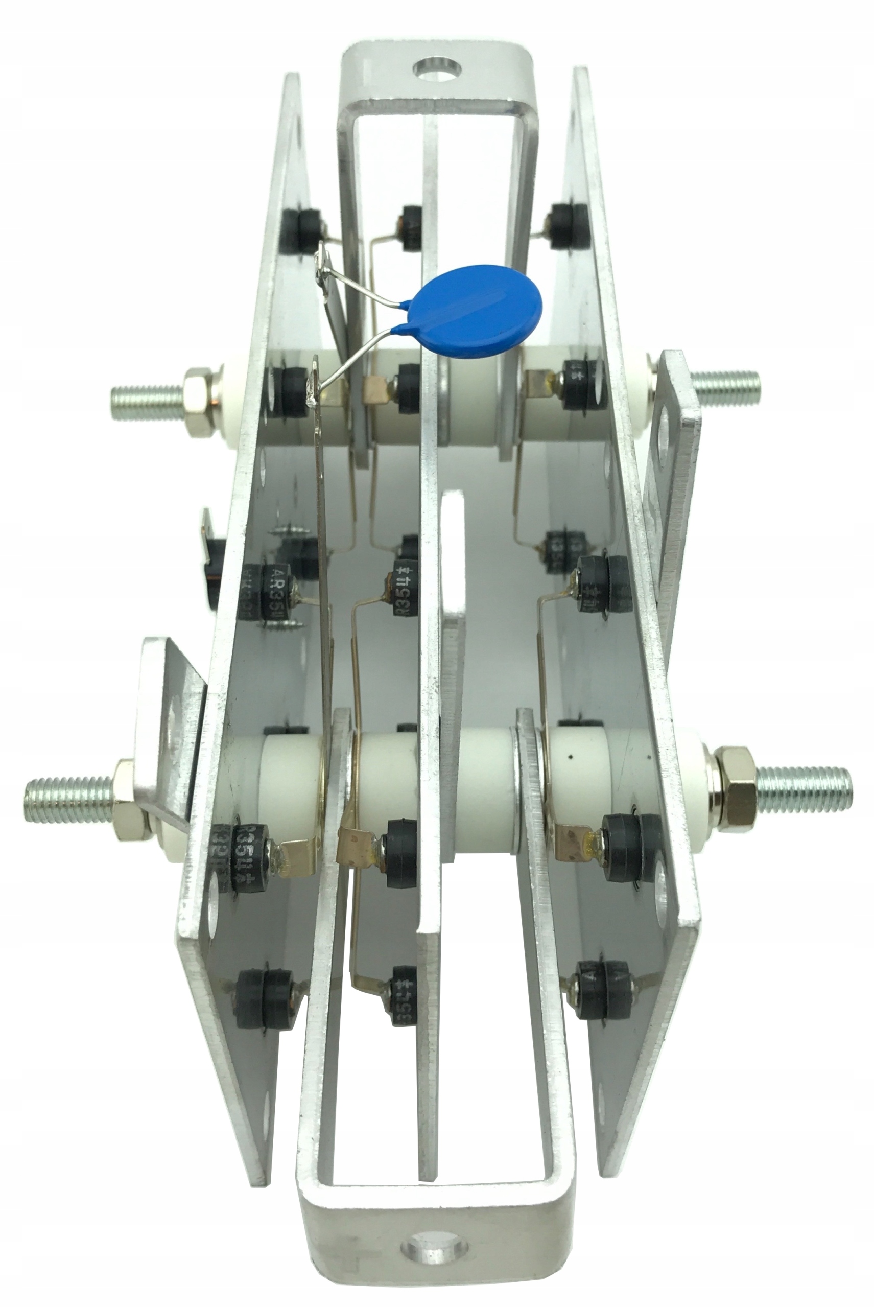 Трифазні мости мають п'ять роз'ємів - ПЛЮС, МІНУС і три вхідних роз'єми, до яких підключаються товсті дроти від основного трансформатора. У такому випадку зазвичай кількість алюмінієвих пластин становить три або шість.