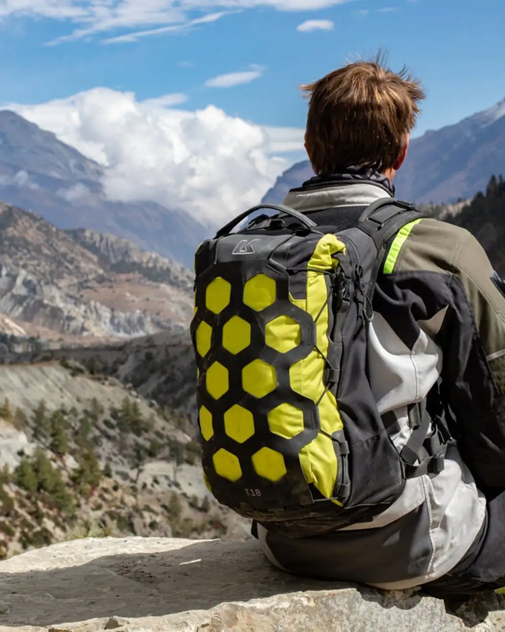 TRAIL18використовує новаторський ремінь Quadloc-Lite™ від Kriega в поєднанні з технологічно передовими конструкційними матеріалами.