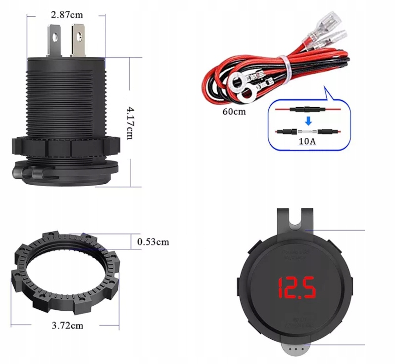 Зарядний пристрій для мотоцикла/автомобіля 2xUSB QC 3.0 з вольтметром!