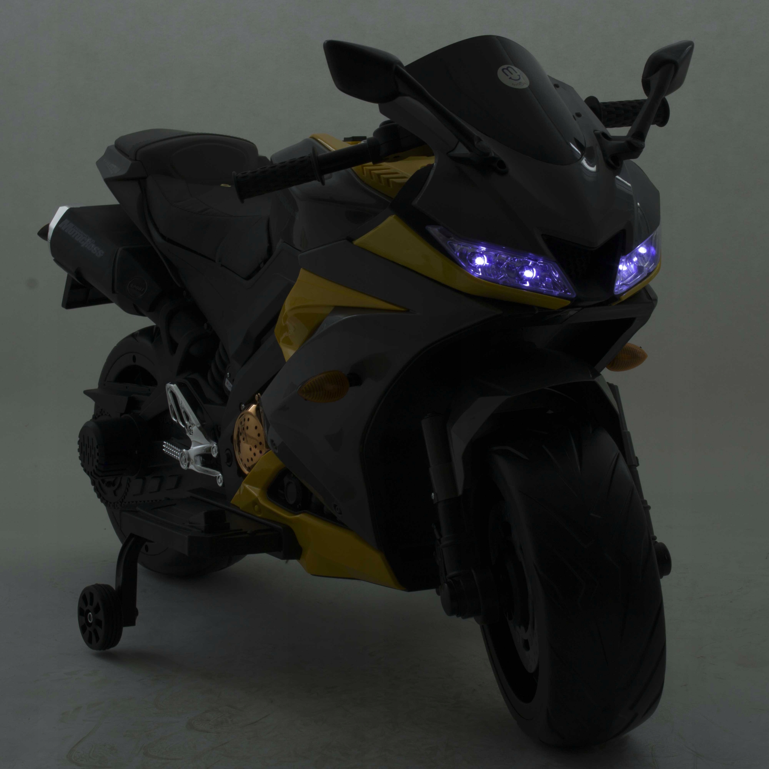Ця модель мотоцикла оснащена незвичайними, привабливими та вражаючими світлодіодними ліхтарями . Ваша дитина точно виділятиметься у дворі. Його буде видно як вдень, так і ввечері.