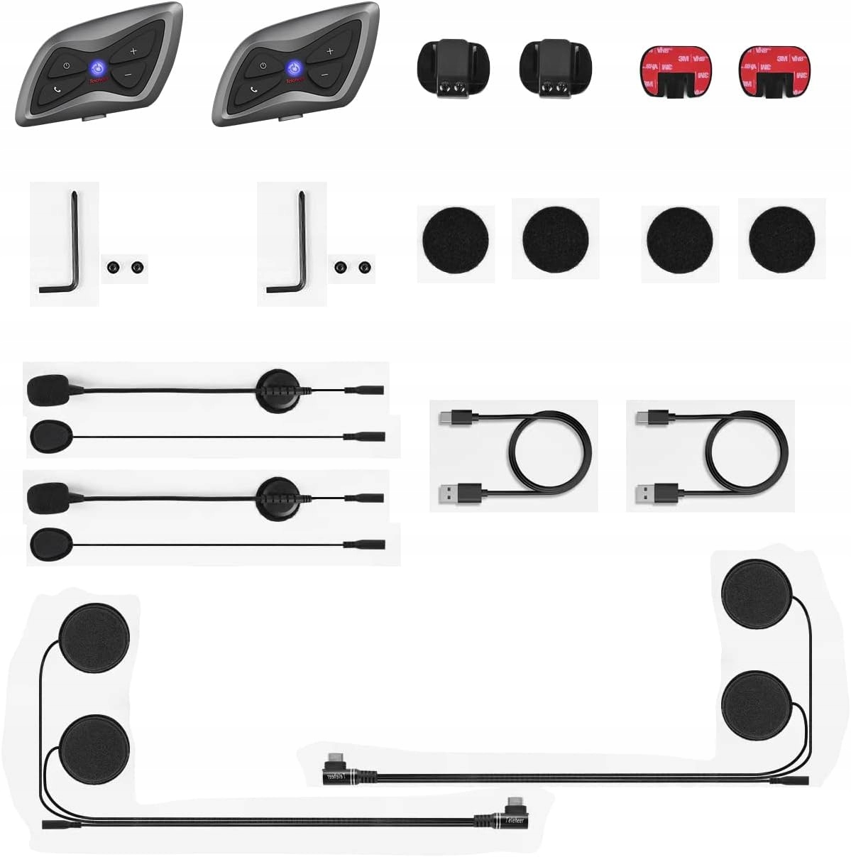 QLVE T6 Plus Дослідна підтримка мотоциклів 1500 м, набір для навушників Bluetooth 5.1 з мікрофоном з водонепроникним та пилозробним ременем IP65, підходить до всіх типів шоломів (2 шт.)