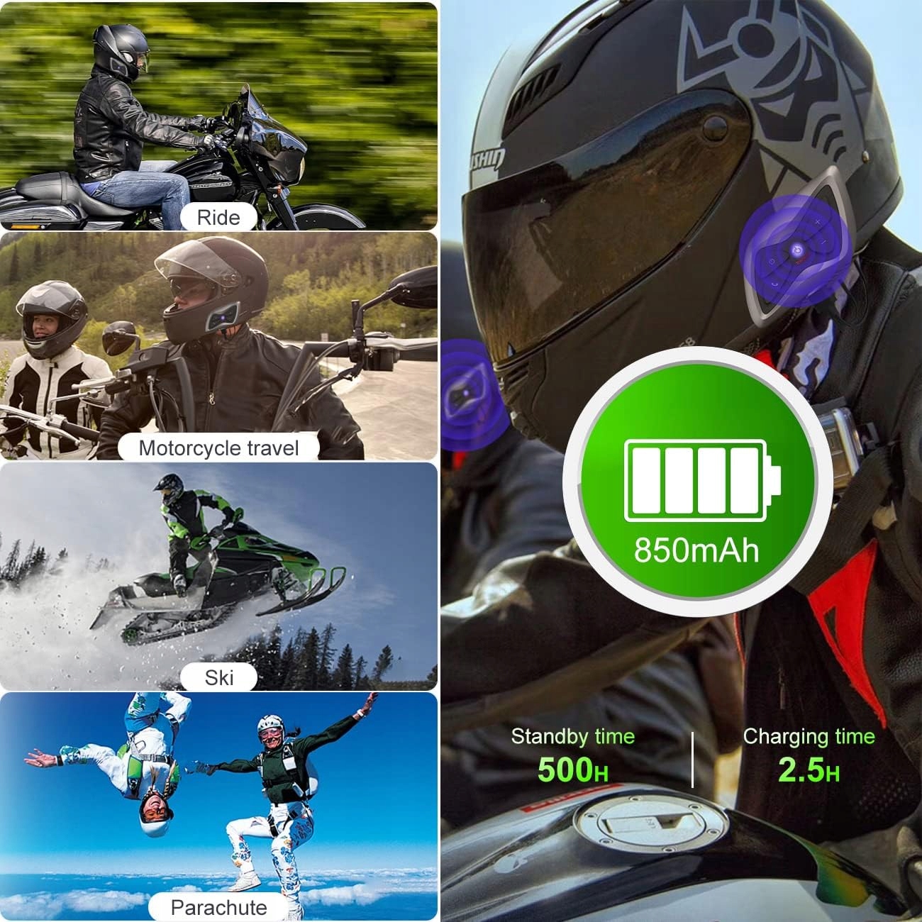 - 【Interkom Bluetooth Повний дуплекс у режимі реального часу】 T6 плюс антена виготовлена з кераміки. Передача сигналу стабільна, а відстань більша. Набір навушників Bluetooth для мотоцикла допомагає ефективно та недорого спілкуватися до 150 км/год (93 миль/год), максимальний діапазон до 1500 м.