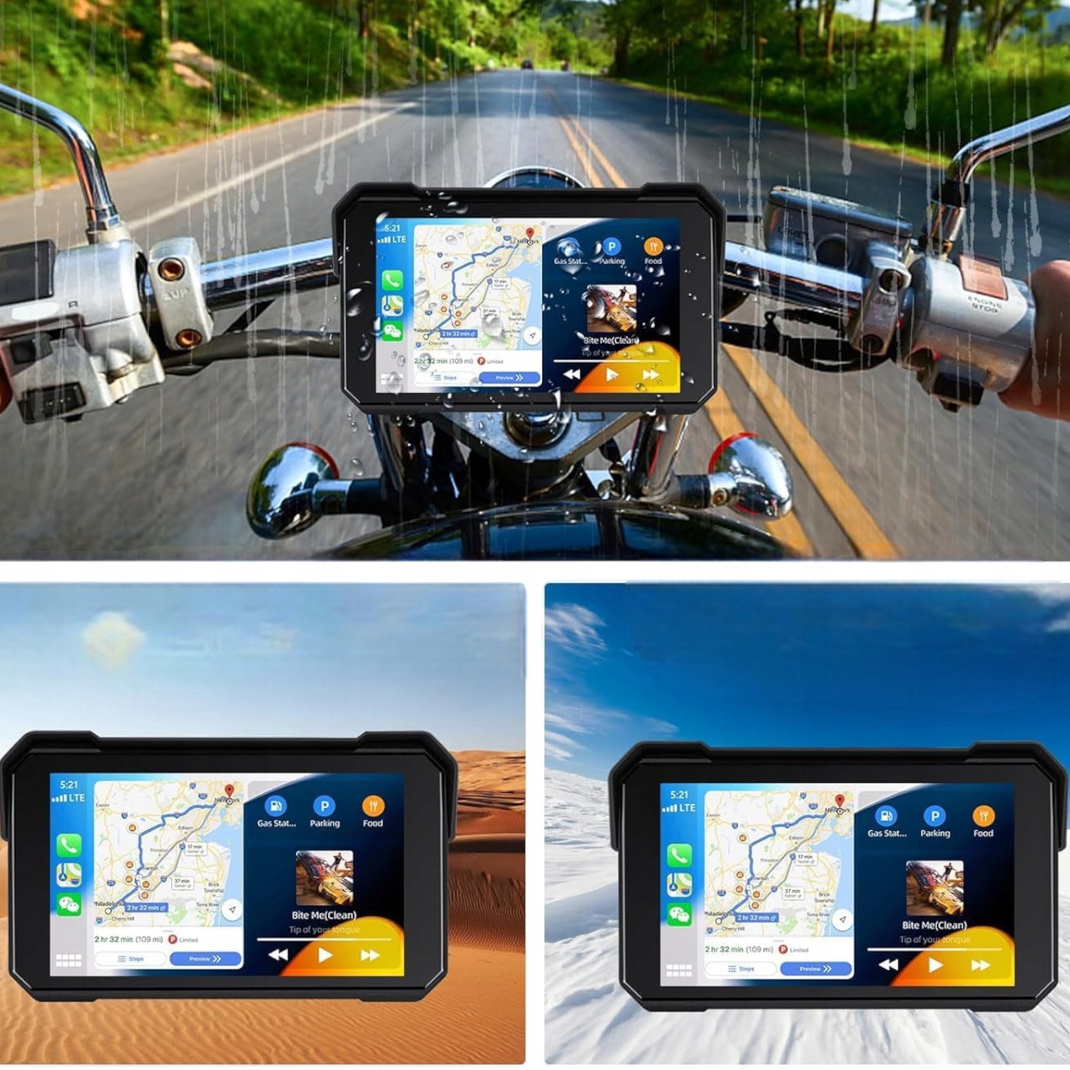- Водонепроникний - мотоциклетний навігаційний пристрій Carplay виготовлено з високоякісних матеріалів і має міцну конструкцію для будь-яких погодних умов. Він водонепроникний за IP68, пило-, водонепроникний і піскозахисний, зберігає свою функціональність і надійність за будь-яких погодних умов