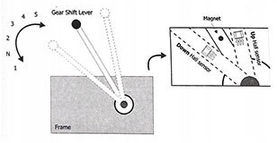 Коли ви намагаєтеся перемістити важіль перемикання передач угору та вниз, датчики зчитують положення перемикання передач і вказують на конкретну передачу на дисплеї.