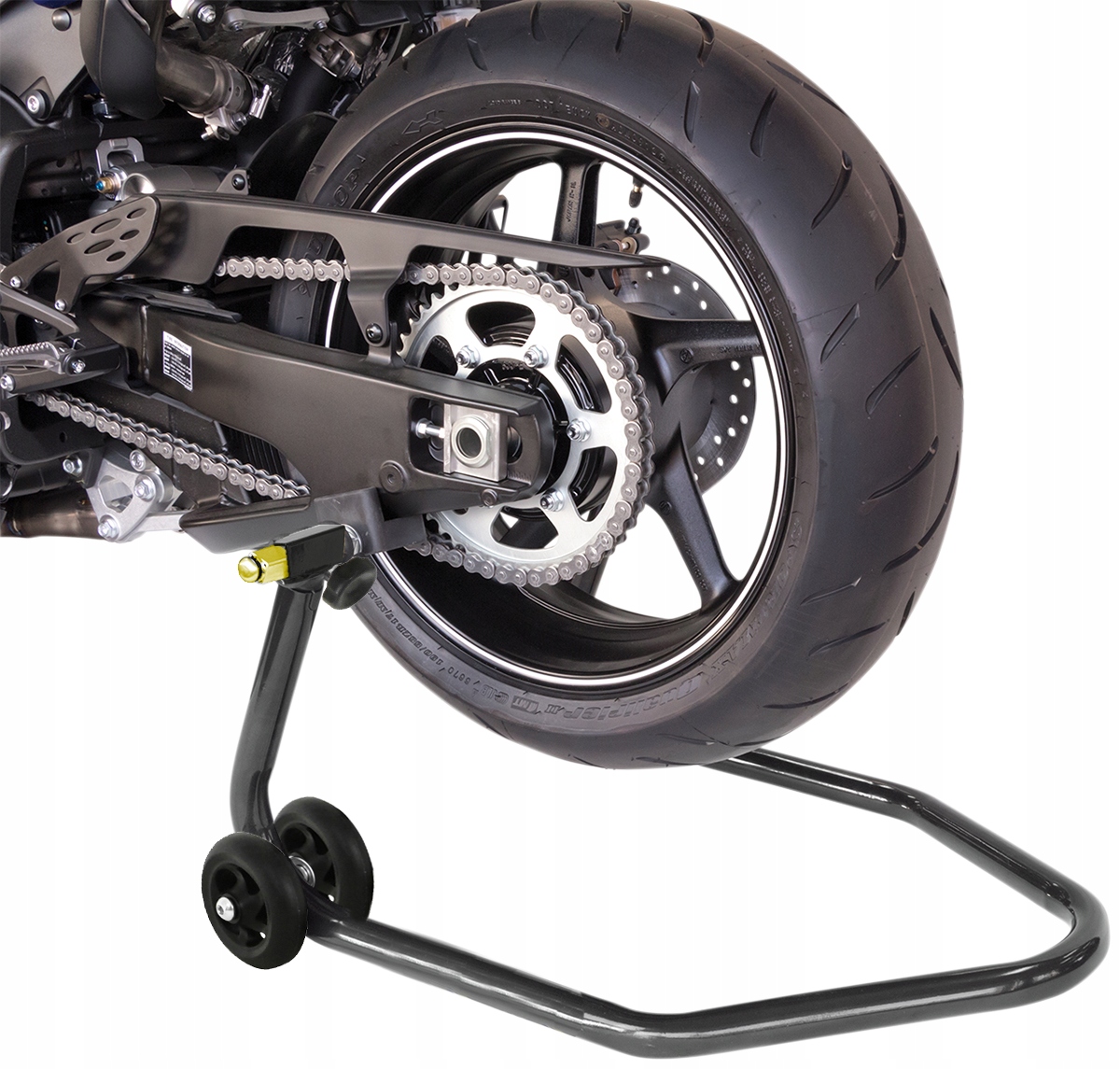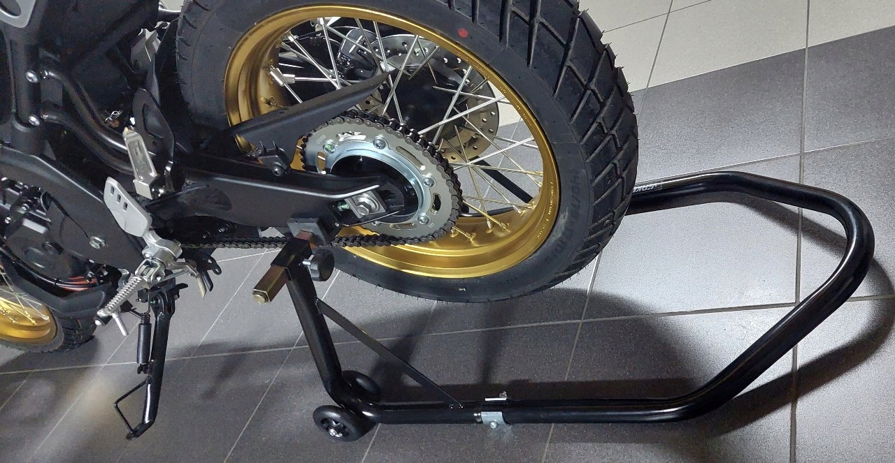 Високоякісна мотоцикл підставка вперед і ззаду для мотоцикла. Підставка корисна в кожному гаражі та майстерні. Завдяки цьому ви можете легко здійснити ремонт та обслуговування, але також мити шини, мазати, замінити ланцюг тощо. Він також працює при зберіганні мотоцикла, оскільки він займає менше місця, шини не завантажені, тому ви можете забути про ризик деформації шини.