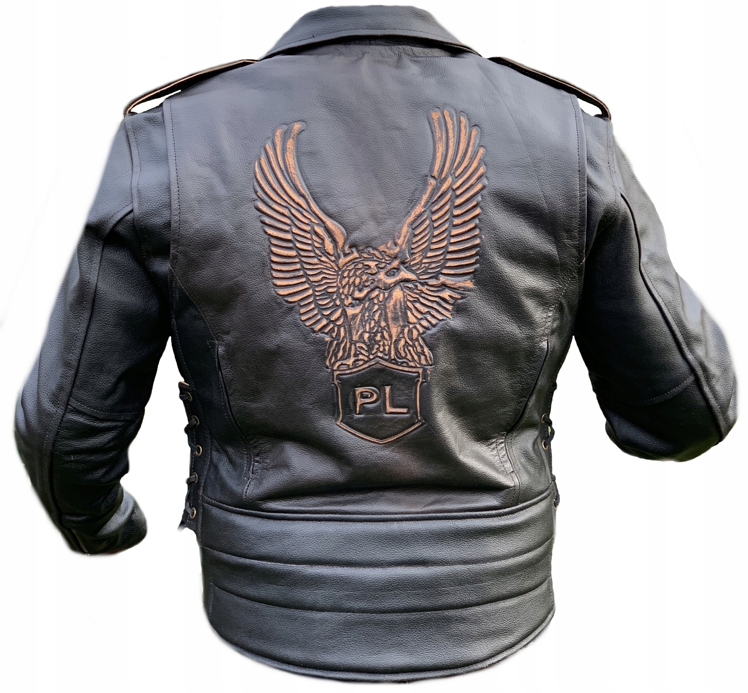 Мотоциклетна куртка з тисненням орла та логотипом PL, виготовлена з телячої шкіри.