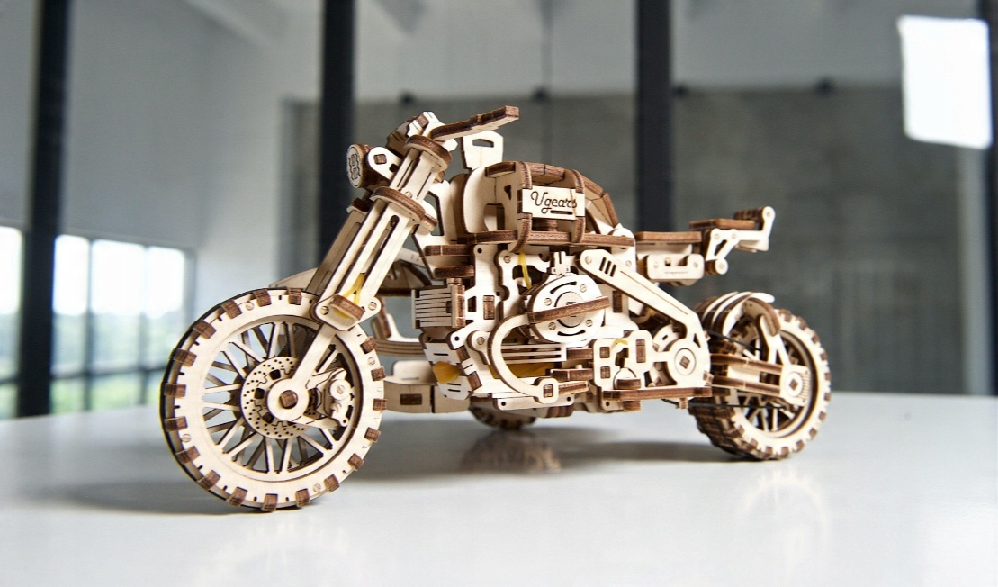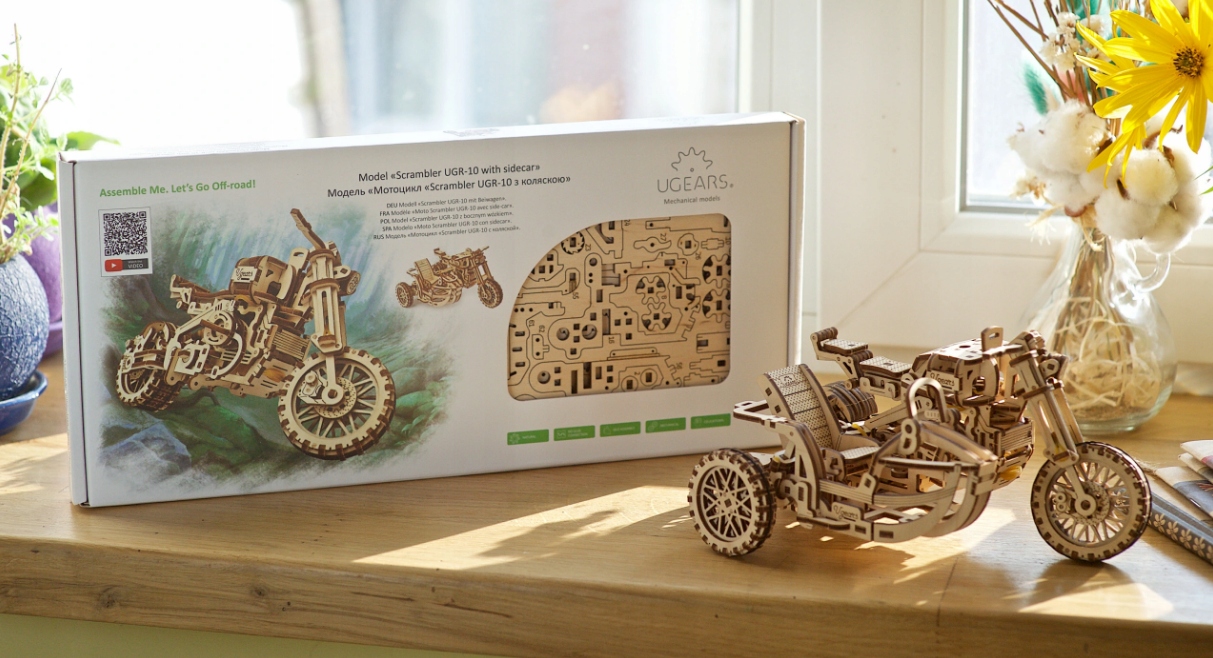 МЕХАНІЧНА МОДЕЛЬ МОТОЦИКЛА SCRAMBLER UGEARS 3D PUZZLE WOOD