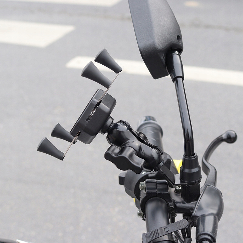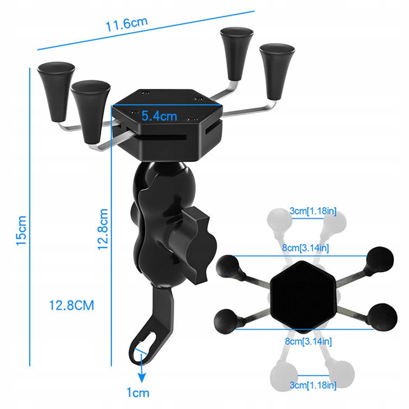 Пропонованийтримач телефону не тільки міцний, але й дуже стійкий. Підходить для більшості телефонів (включаючи Note) і пристроїв, довжина сторін яких знаходиться в діапазоні 35-85 мм. Тримач оснащений двома шарнірами, які дозволяють повертати пристрій на 360 градусів і стабілізувати телефон навіть під час їзди по бездоріжжю!