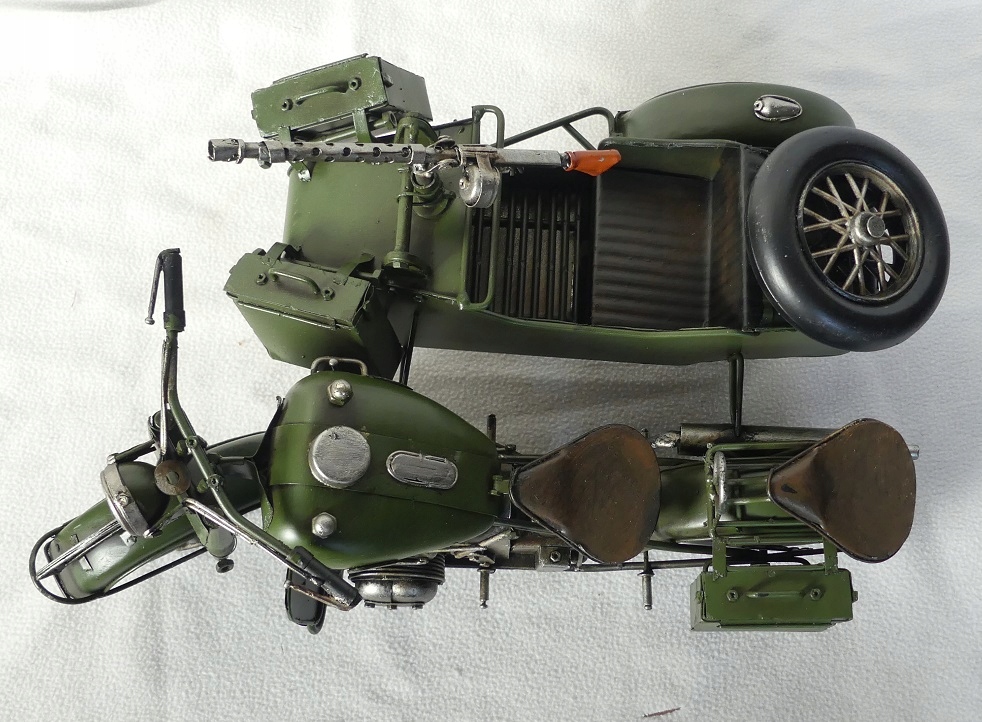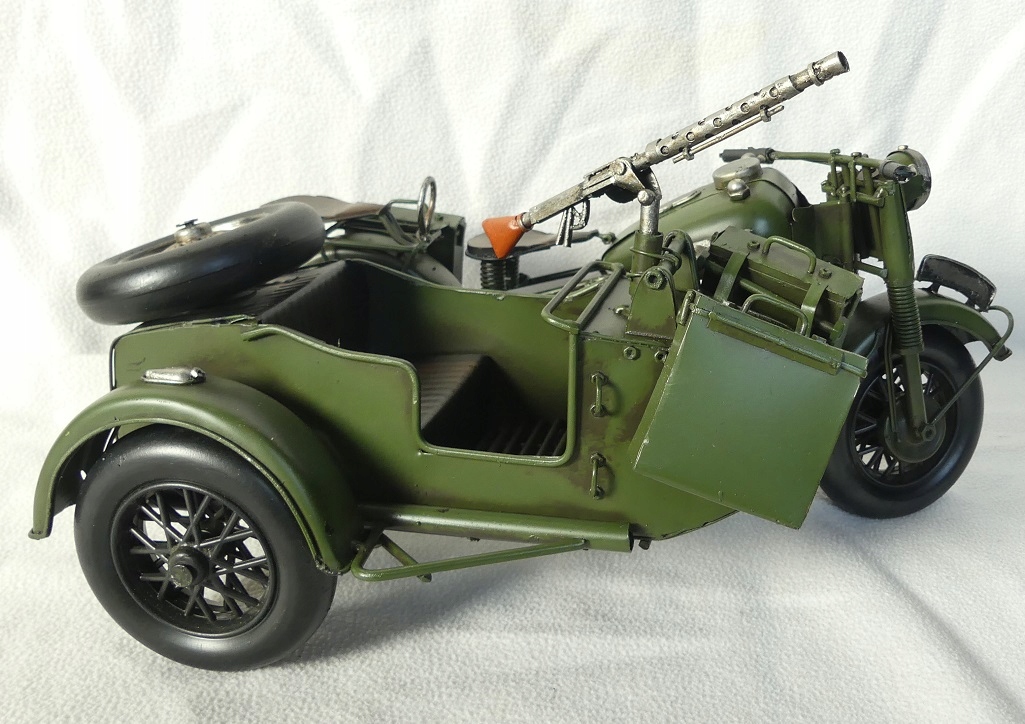 Мотоцикл з металевого військового двигуна з ретро -кошиком 38 см моделі транспортного засобу