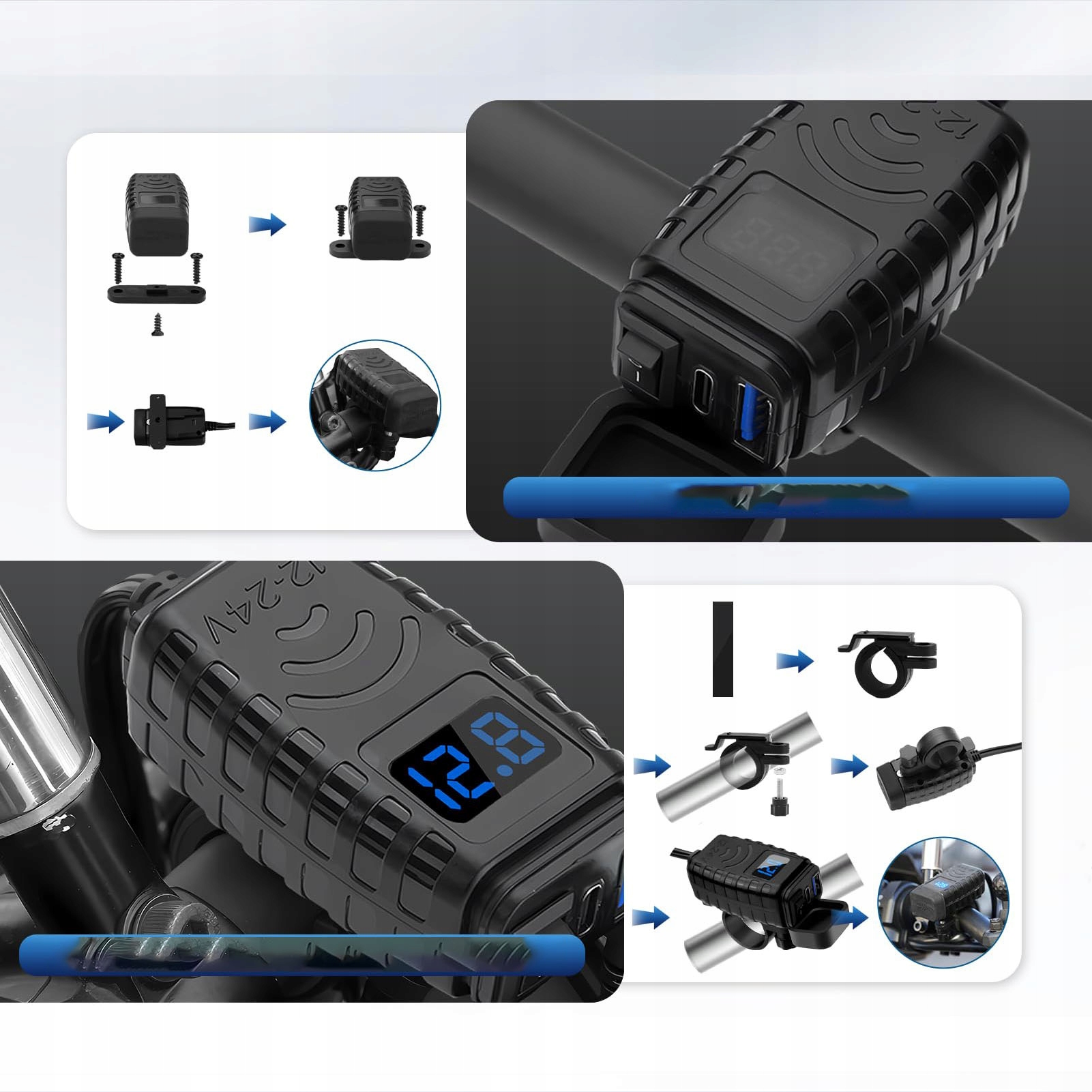 【Два методи установки】 Ви можете встановити його на рульове колесо мотоцикла, використовуючи ручку діаметром діаметром 1,9-2,2 см/0,75-0,87; Або ви можете встановити його в будь -якому місці на транспортному засобі за допомогою кріпильних ручок та гвинтів.