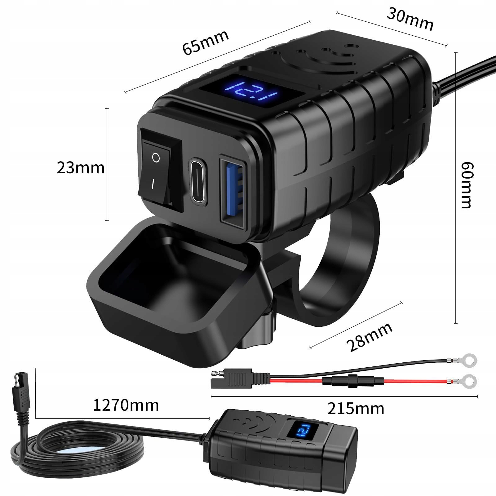Мотоцикл зарядний пристрій Voltmeter USB + USB-C тип C QC 3.0 3CCC