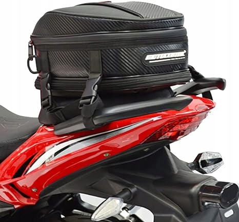 - Сідлова сумка для мотоцикла Durable Oxford. Ця мотоциклетна сідельна сумка виготовлена з вуглецевого волокна (з візерунком) і водонепроникного оксфорду, вона надзвичайно проста та крута, велика місткість, багатофункціональна, регулюється за допомогою блискавки, високоякісні блискавки, регульована ремінці, пряжка, що швидко знімається, легкий, ідеально підходить для мотоциклів, мотобайків, подвійного спорту, ендуро, верхової їзди, їзди на велосипеді, подорожей, активного відпочинку, спорту, полювання, походів, тактики, риболовлі, кемпінгу, усіх видів активного відпочинку та щоденного використання .