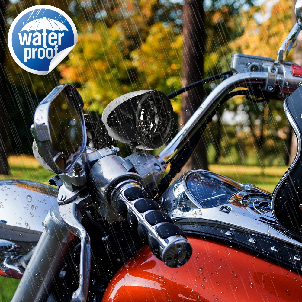Цей мотоциклетний динамік розміром 87 x 71 мм забезпечує гучний, чистий і точний звук і має функцію захисту від крадіжки. Підтримує Bluetooth, MP3, FM-тюнер, TF-карту та інтерфейси USB.