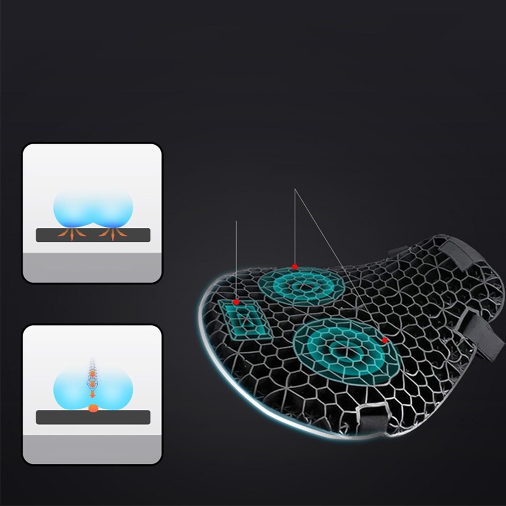 Подушка для сидіння мотоцикла виготовлена з високоеластичного гелю, який більш гнучкий, ніж традиційні губки. Ми найновіший двошаровий гель, поглинання ударів буде кращим. Це може забезпечити достатню амортизацію та амортизацію, а також значно зменшити відчуття оніміння під час тривалої ходьби.