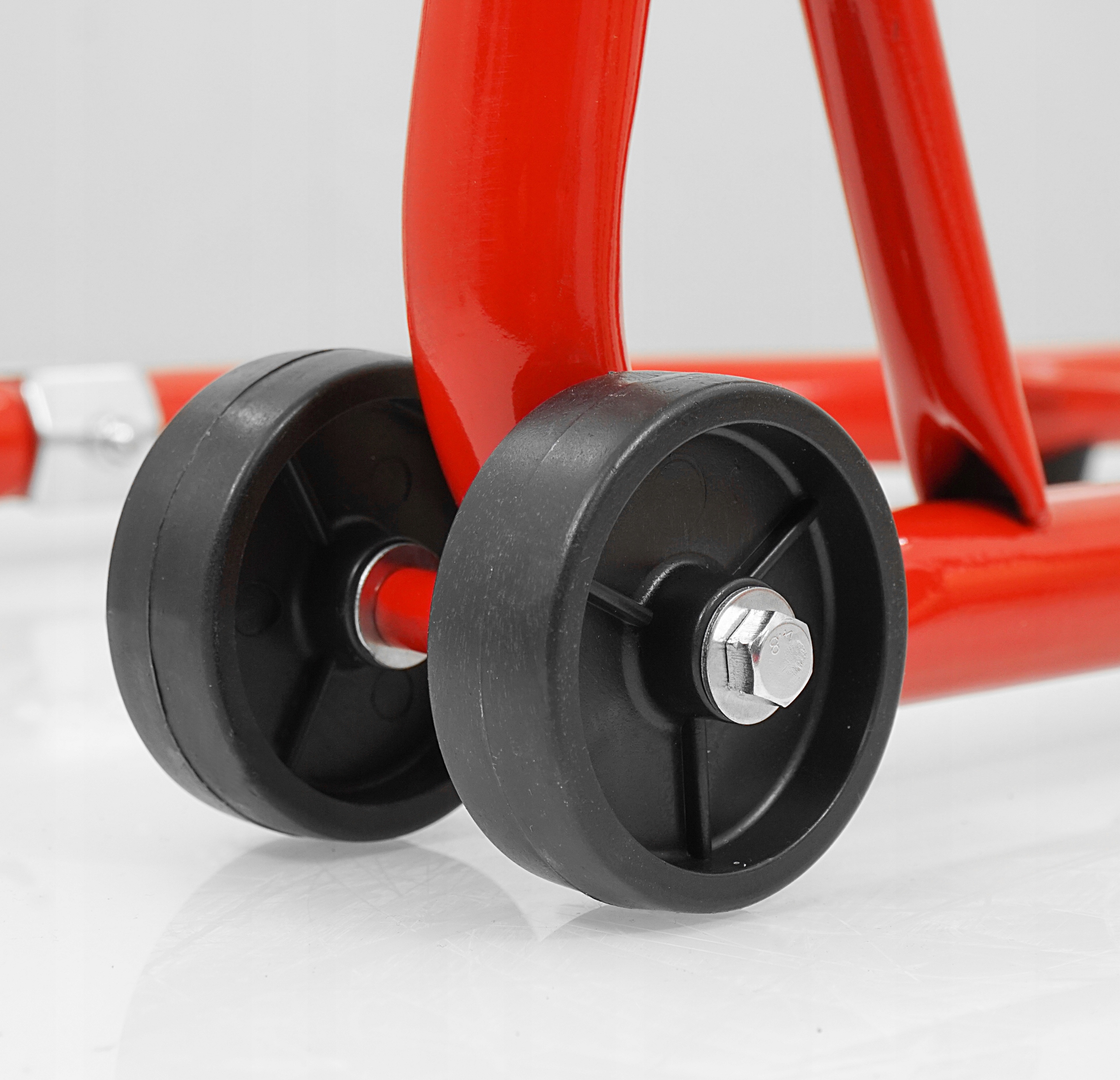 Підйомник виготовлений з матеріалів найвищої якості. Регулюється під індивідуальну ширину мотоцикла. Всі деталі захищені від корозії шляхом порошкового фарбування або оцинкування. Колеса виготовлені з високоякісного композиту.