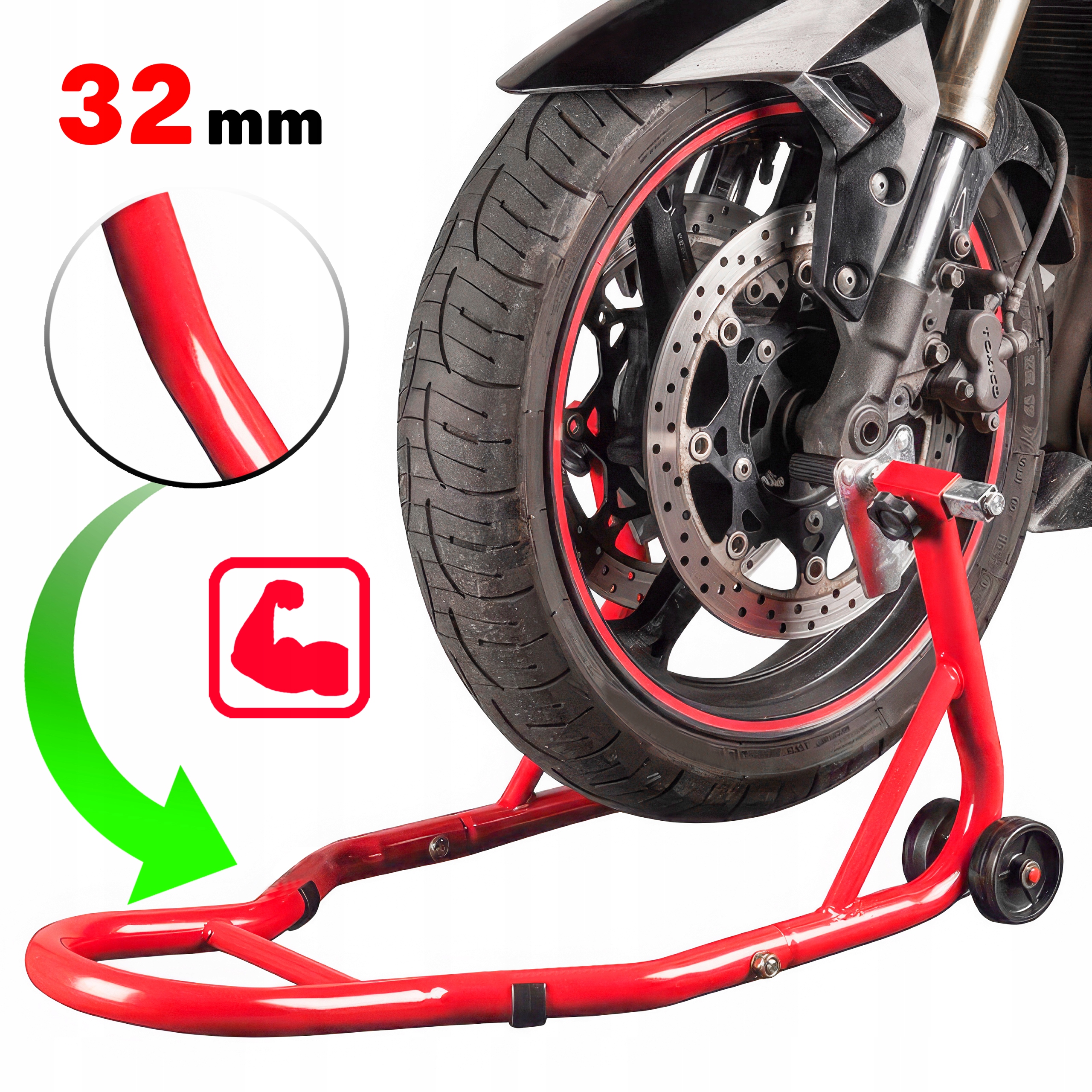 Кронштейни для підйому передніх коліс мотоцикла. Завдяки підтримці автомобіля люди можуть легко чистити та обслуговувати велосипед вдома чи в ремонтній майстерні, і його можна використовувати разом або окремо. Це дозволяє розмістити мотоцикл (наприклад, під час ремонту) у зручному положенні, не обтяжуючи шини. Сумісний з більшістю моделей брендів. Корисно в кожному гаражі та майстерні.