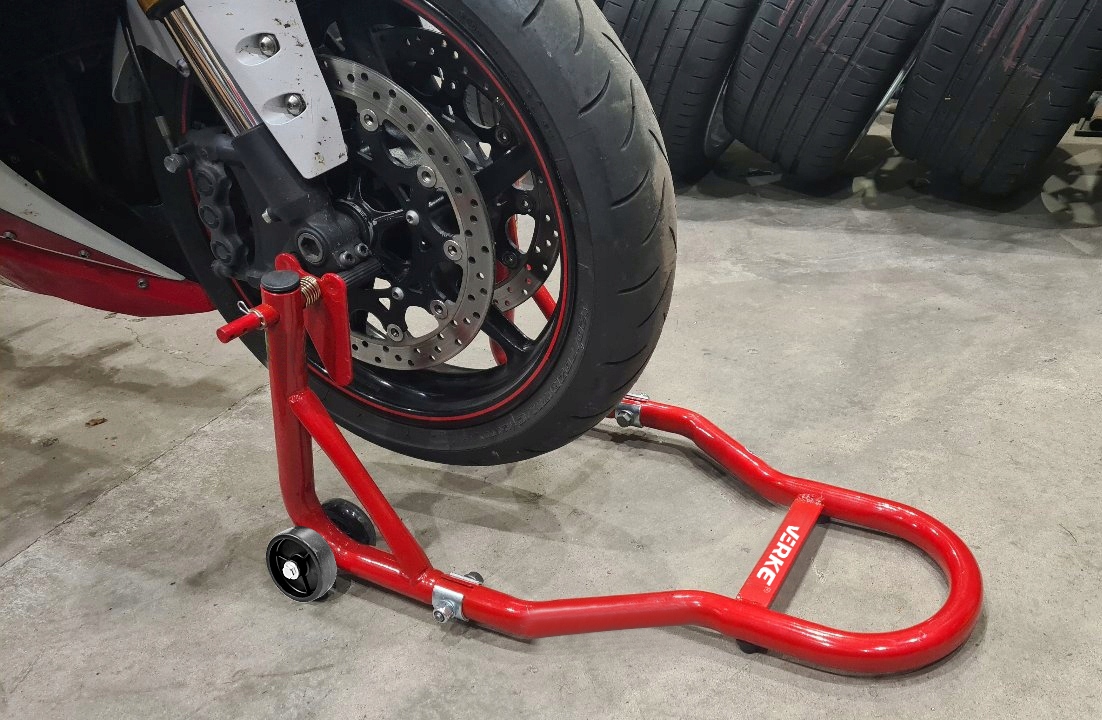 Високоякісна підставка для мотоцикла для передньої та задньої частини мотоцикла. Стенд знадобиться в кожному гаражі та майстерні. Завдяки цьому ви можете легко виконувати ремонт та технічне обслуговування, а також мити шини, змащувати їх, замінювати ланцюг тощо. Це також корисно під час зберігання мотоцикла, оскільки займає менше місця, шини не навантажені, тому ви можете забути про ризик деформації шин.