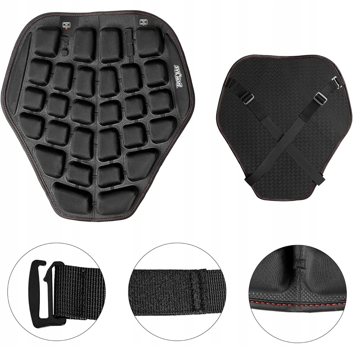 Забезпечте максимальний комфорт під час тривалих поїздок на мотоциклі завдяки інноваційній пневматичній подушці для сидіння. Завдяки використанню запатентованої системи надування, ергономічному дизайну та чудовій амортизації ця подушка є незамінним аксесуаром для кожного мотоцикліста.