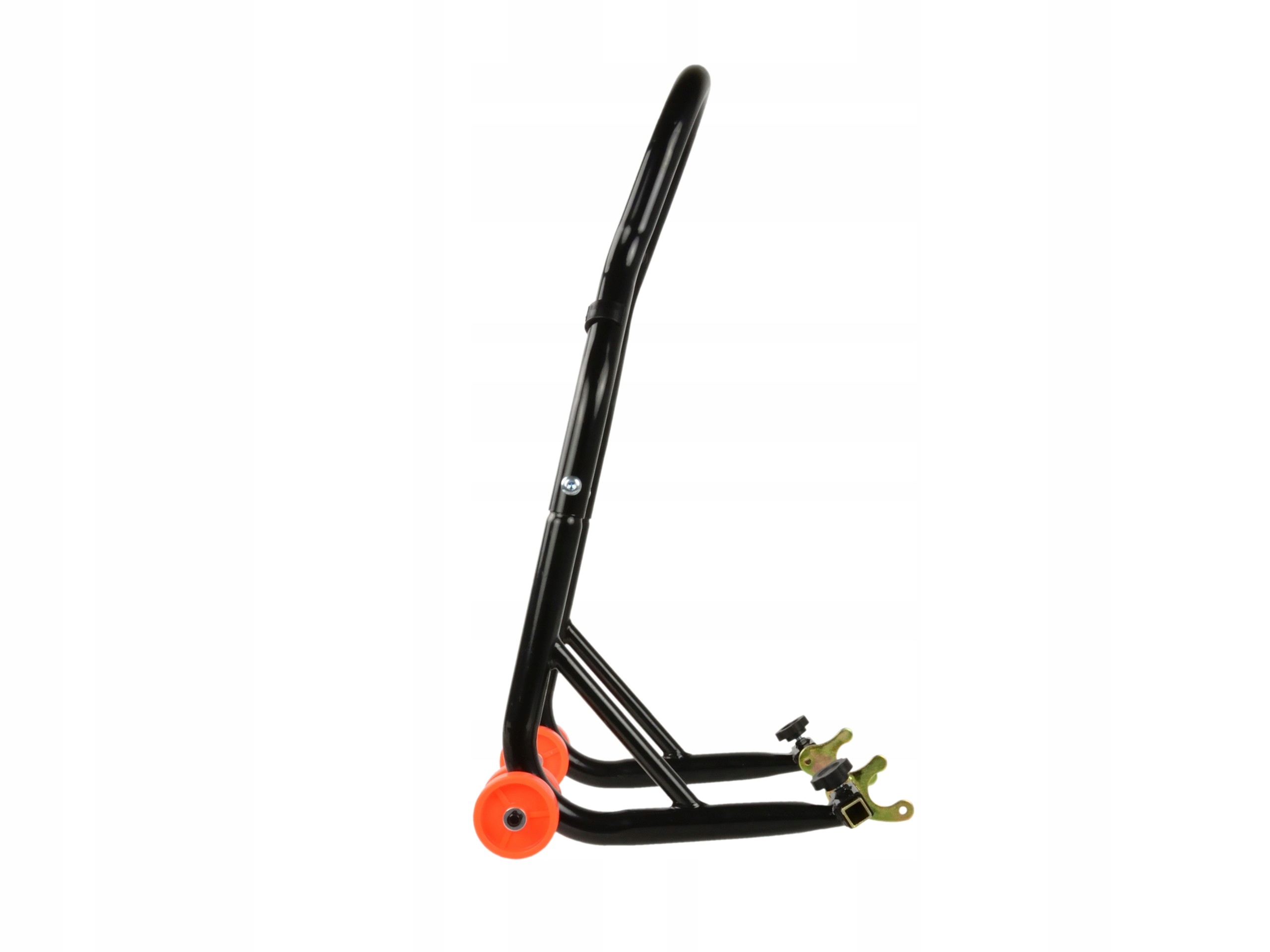Посилена мотоциклетна стійка для передньої та задньої осі. Для виготовлення використовувалася сталева труба з порошковим покриттям діаметром 32 мм. Крім того, посилена конструкція підставки гарантує стабільний і безпечний підйом мотоцикла. Колеса виготовлені з високоякісного ABS пластику.