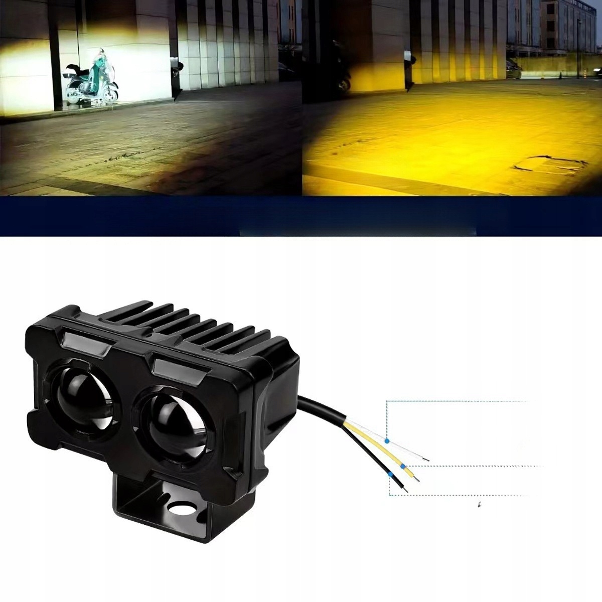 МОТОЦИКЛЕТНІ ГАЛОГЕННІ СВІТЛОДІОДНІ ЛАМПИ ФАРИ 20W АЛЮМІНІЙ ЖОВТИЙ + БІЛИЙ