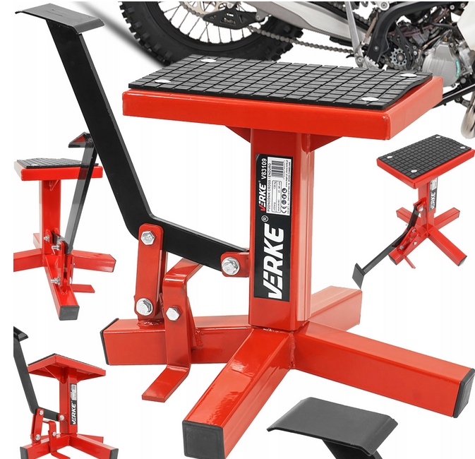 Універсальний підйом, присвячений схрещенню, ендуро, пробних мотоциклів. Простий у використанні, легкий та портативний дозволить безкоштовний ремонт безпечним та ефективним способом, а також значно полегшить миття мотоцикла. Високоякісна сталь, яка використовується для створення конструкції, забезпечить її довговічність та стабільне та безпечне підняття мотоцикла. Використання гуми, що не належать до ковзання, забезпечує високу безпеку та комфорт роботи.