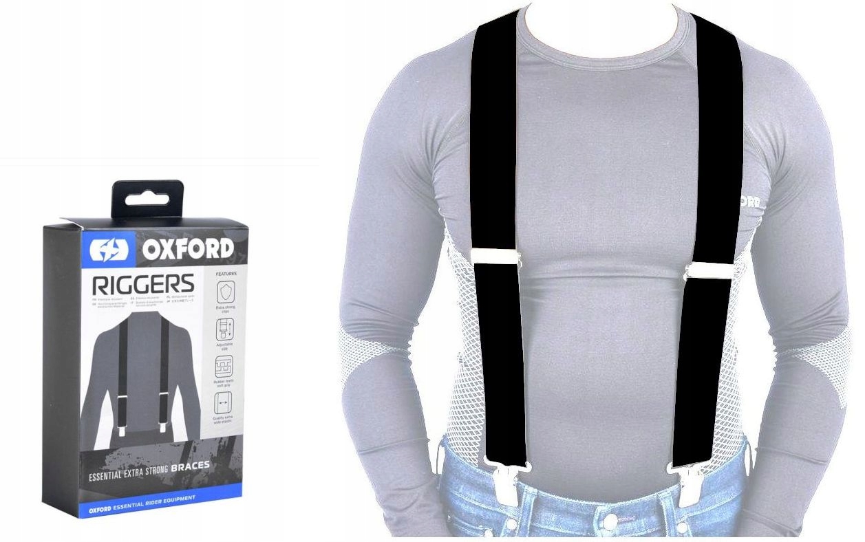 Oxford Riggers - це продукт, розроблений спеціально для мотоциклістів. Вони мають посилені металеві пряжки для надійного утримання, а прогумовані зубці захистять ваш одяг від зачеплення. Регульовані ремені (400-790 мм) дозволяють відрегулювати ремінь під зріст вершника