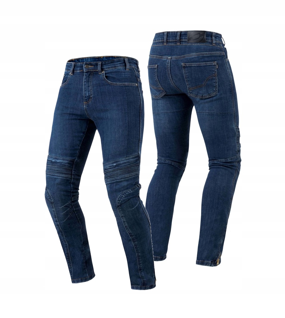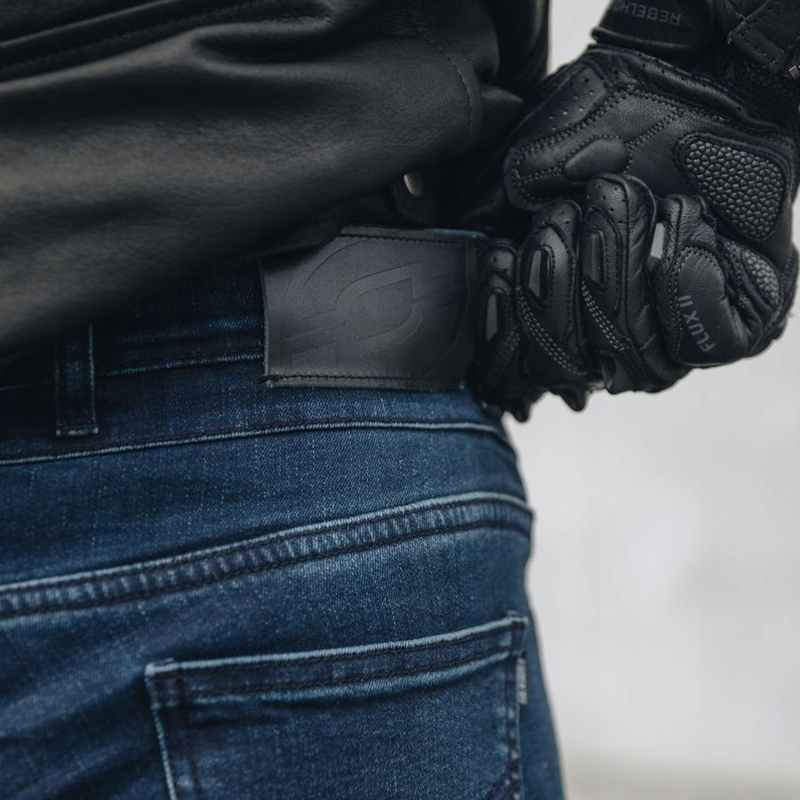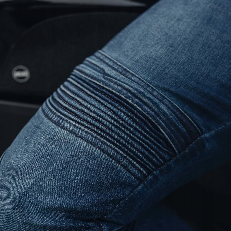 Мотоциклетні джинсові штани Hornet мають знімні наколінники CE рівня 2. Кишені на стегнах дозволяють щоб додати протектори. Еластичні вставки над колінами забезпечують свободу рухів. Довгі блискавки полегшують одягання та знімання штанів. Штани приталеного крою.
