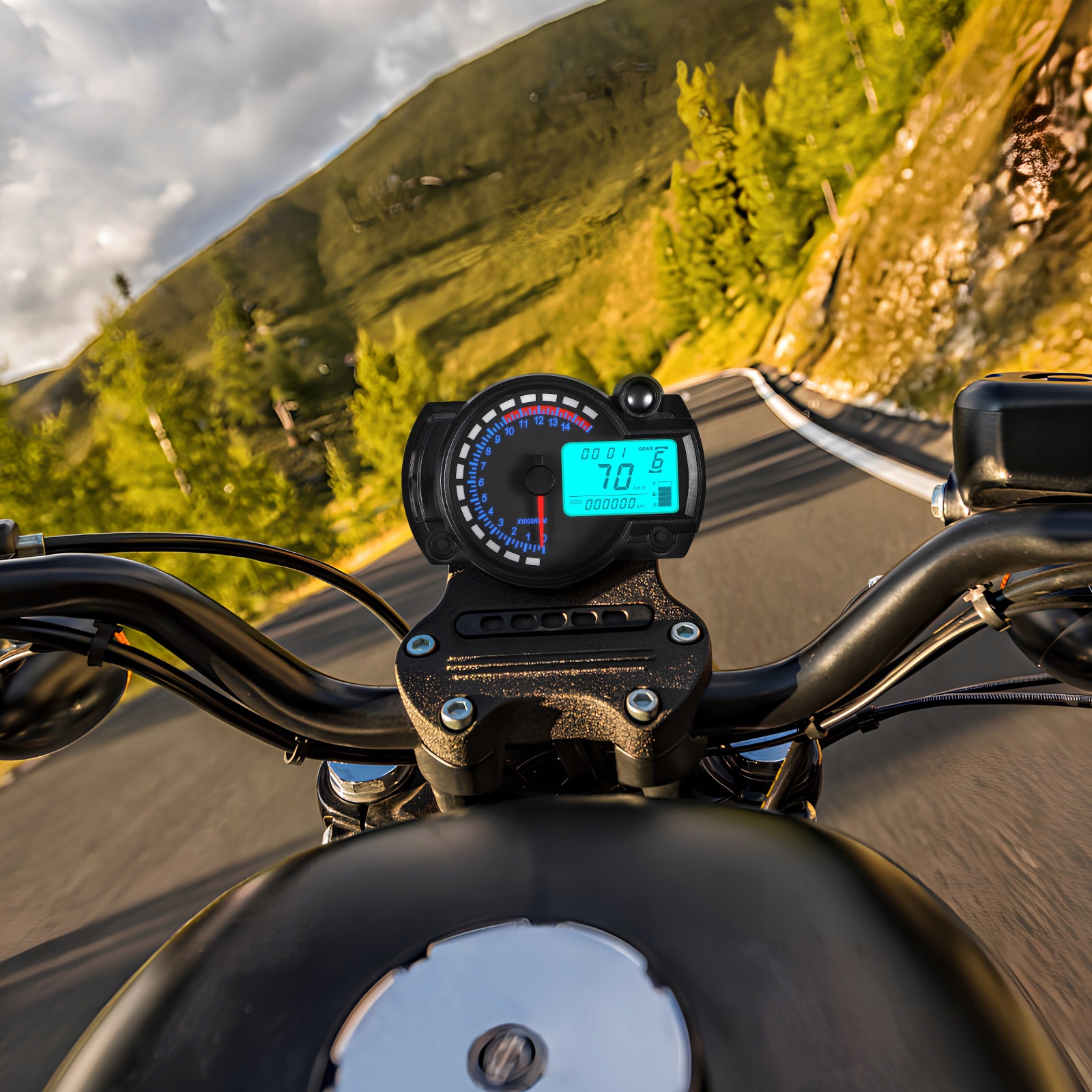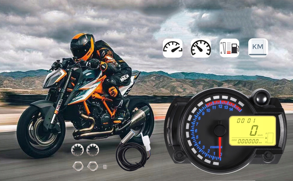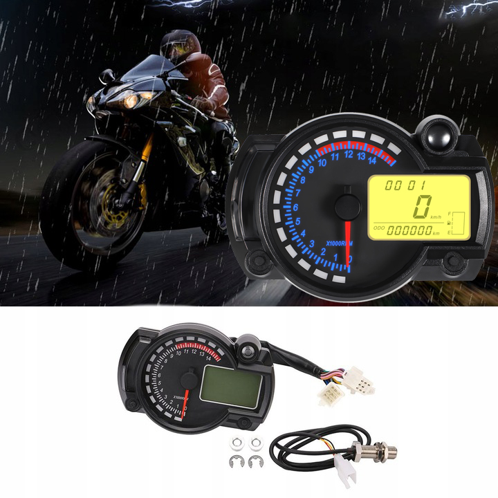 ⏩Пропозиція включає універсальний цифровий одометр, який підходить для більшості мотоциклів, кросових велосипедів та інших транспортних засобів, обладнаних 2-4-циліндровими двигунами. На годиннику відображаються всі необхідні параметри автомобіля та елементи керування. Крім того, годинник дозволяє змінювати колір підсвічування.