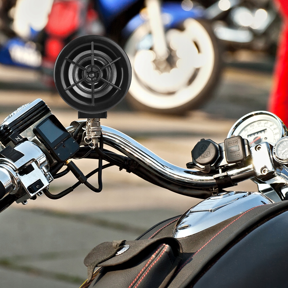 Цей мотоциклетний динамік розміром 87 x 71 мм забезпечує гучний, чистий і точний звук і має функцію захисту від крадіжки. Підтримує Bluetooth, MP3, FM-тюнер, TF-карту та інтерфейси USB.